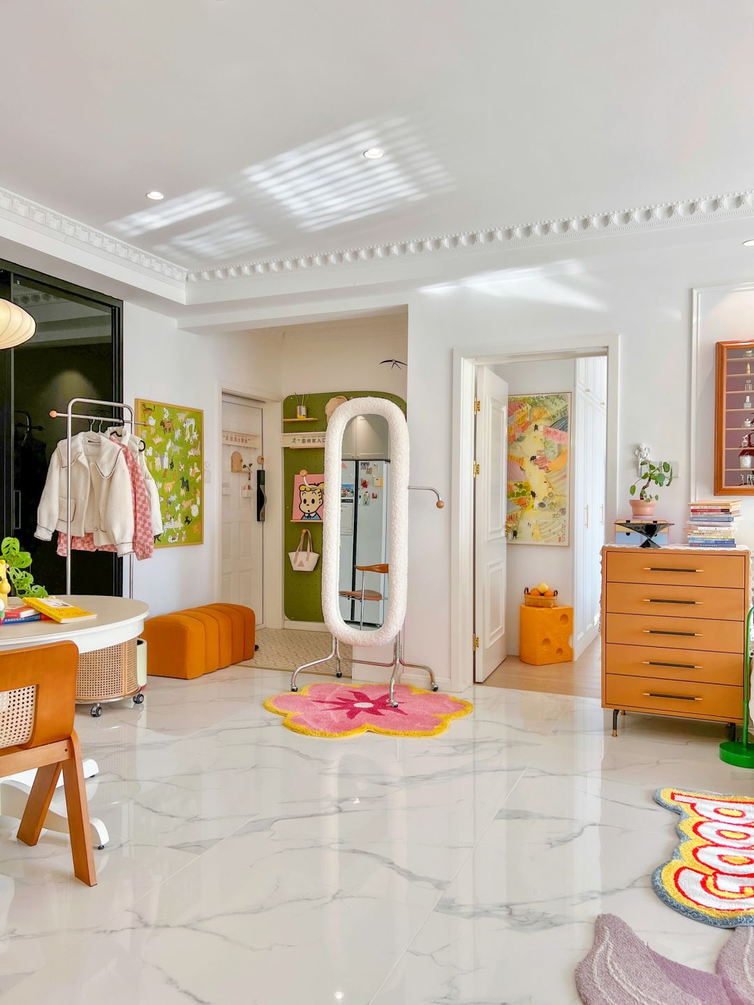 这样才会中和地砖的冰冷感