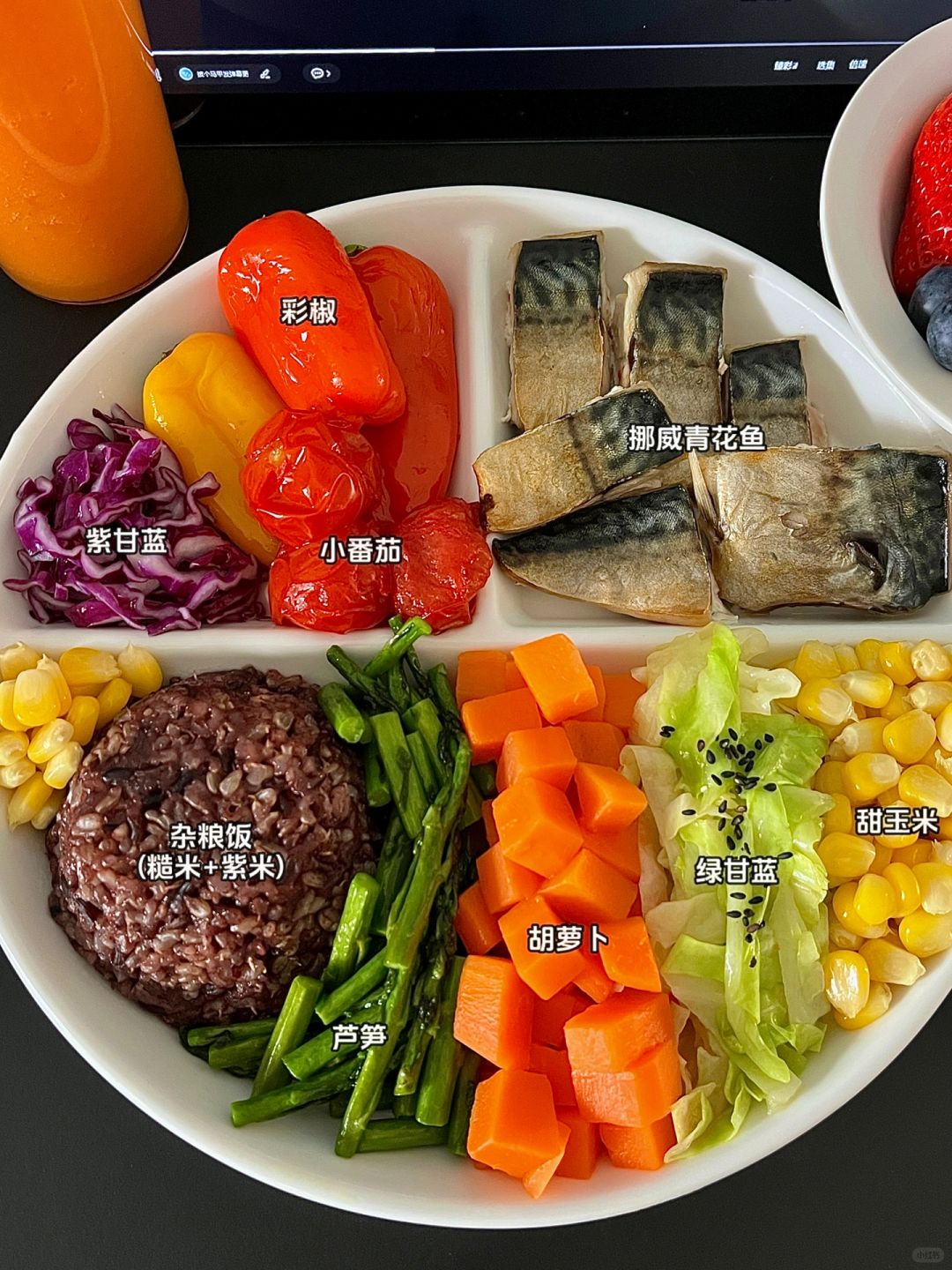 🍚杂粮饭(糙米+紫米)/芦笋🥕胡萝卜/绿甘蓝