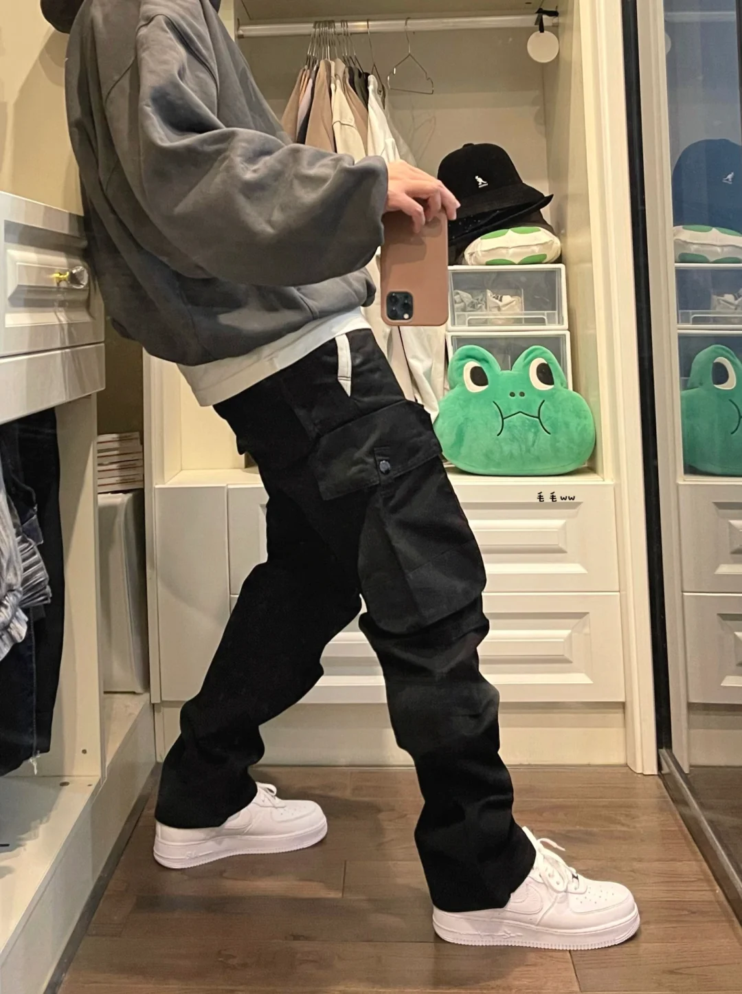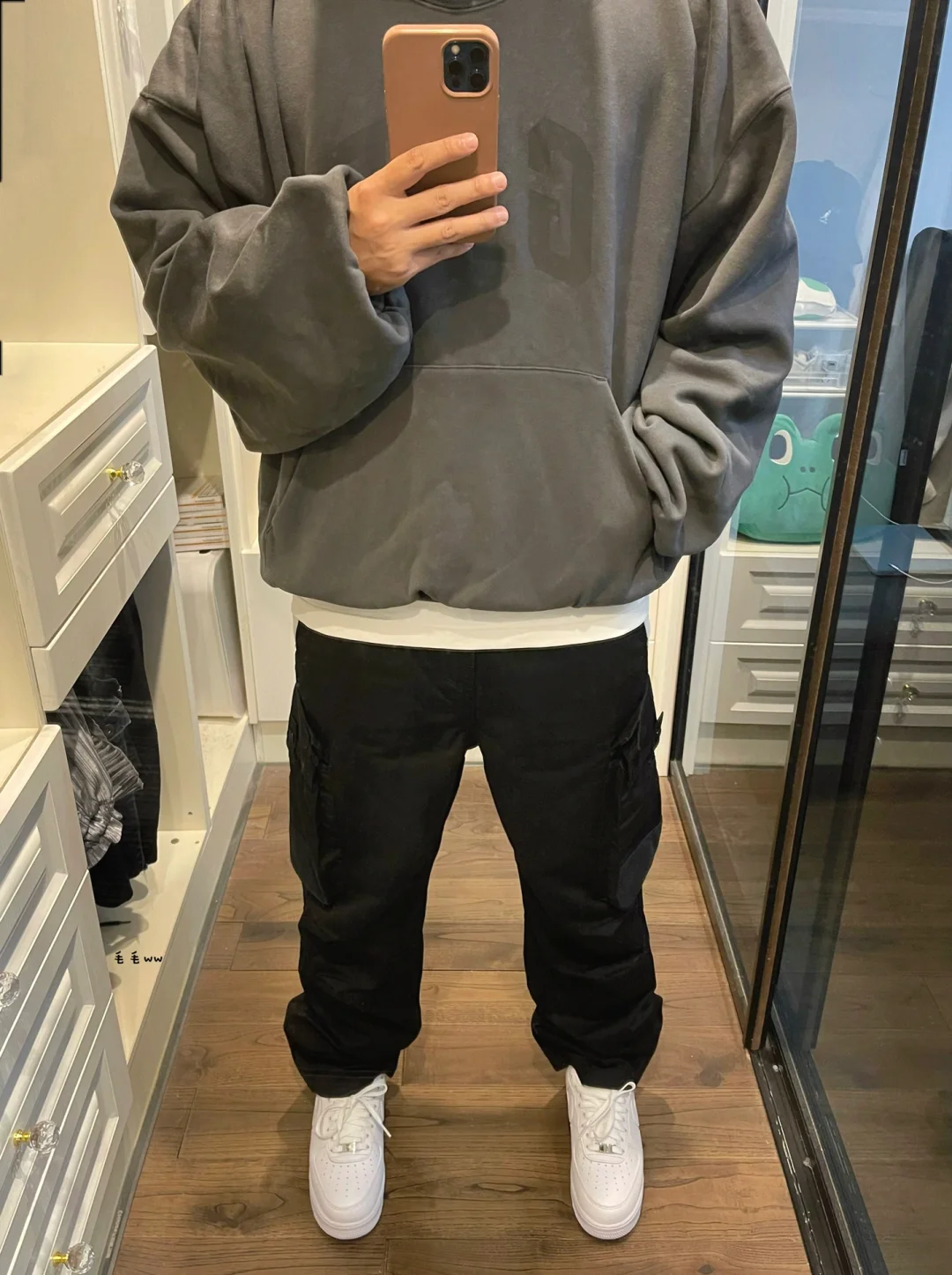 -极简色调的搭配,整体黑白灰三色即可;连帽卫衣与体恤,作出长短层搭的效果 . -直筒型工装裤,百搭也是安全牌,适配各种鞋型;关键取决于裤脚和谐的堆叠感 . —————— . ✏️本人178cm75kg 球鞋尺码265mm(正常EU42) . 💭以上均为我个人观点,不喜勿喷,欢迎讨论。