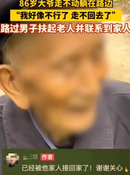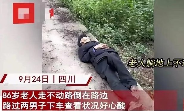 看哭了!四川,86岁老人走不动路躺倒在路边,两名男子发现后赶紧下车查看,结果老人开口第一句话就惹人泪目:“我好像不行了,走不回去了!”男子将老人扶起后称要送他回去,老人随后下意识的举动更让人感动!