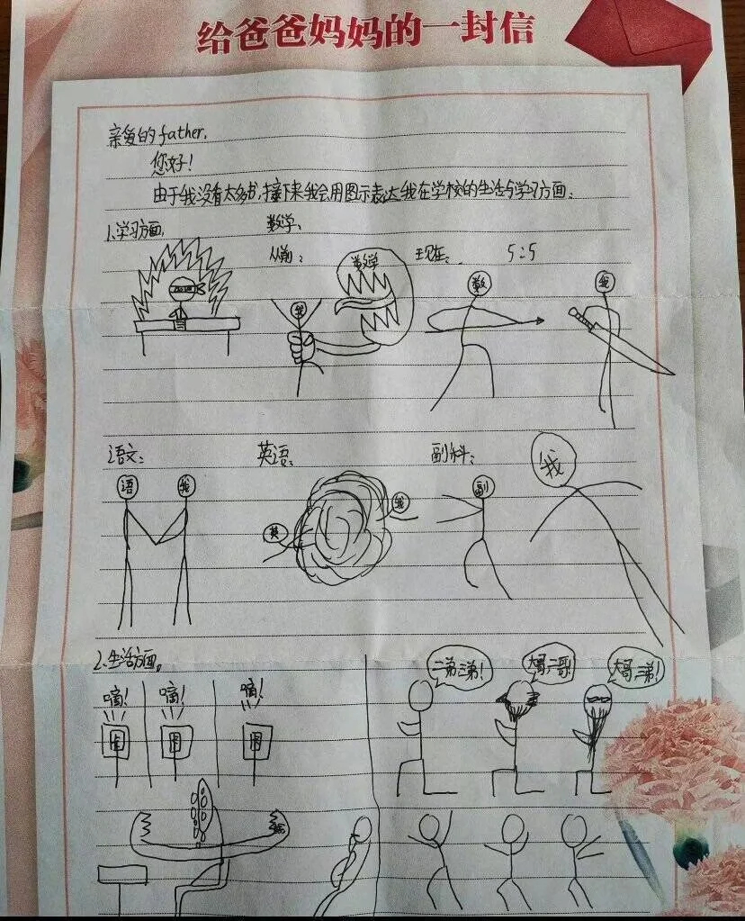 家长会上学生写的:给爸爸妈妈的一封信