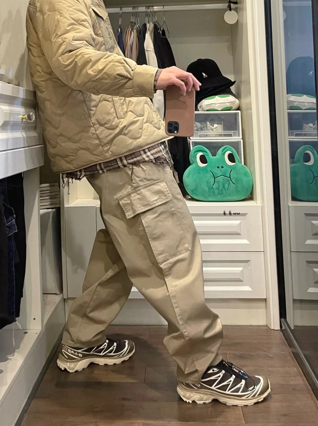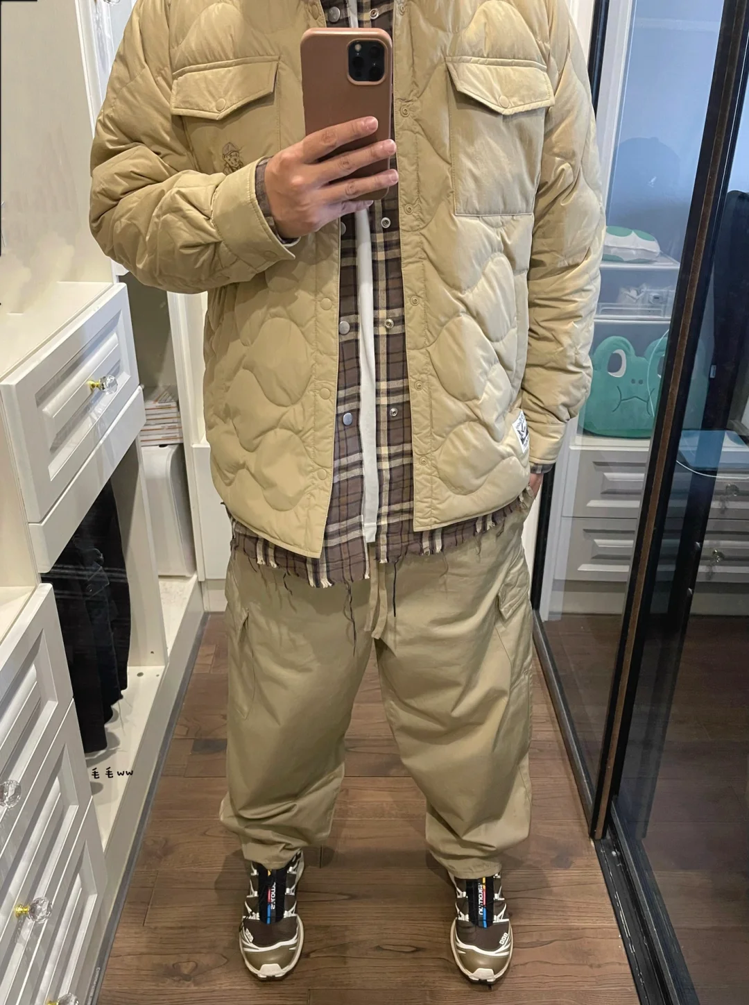 -户外穿搭,必须接地气,低调的卡其色拿捏 -绗缝羽绒,阔腿工装裤,细节内搭格纹衬衫 -选鞋方案,近色棕色调,同时又跟衬衫呼应 . —————— . ✏️本人178cm75kg 球鞋尺码265mm(正常EU42) . 💭以上均为我个人观点,不喜勿喷,欢迎讨论。