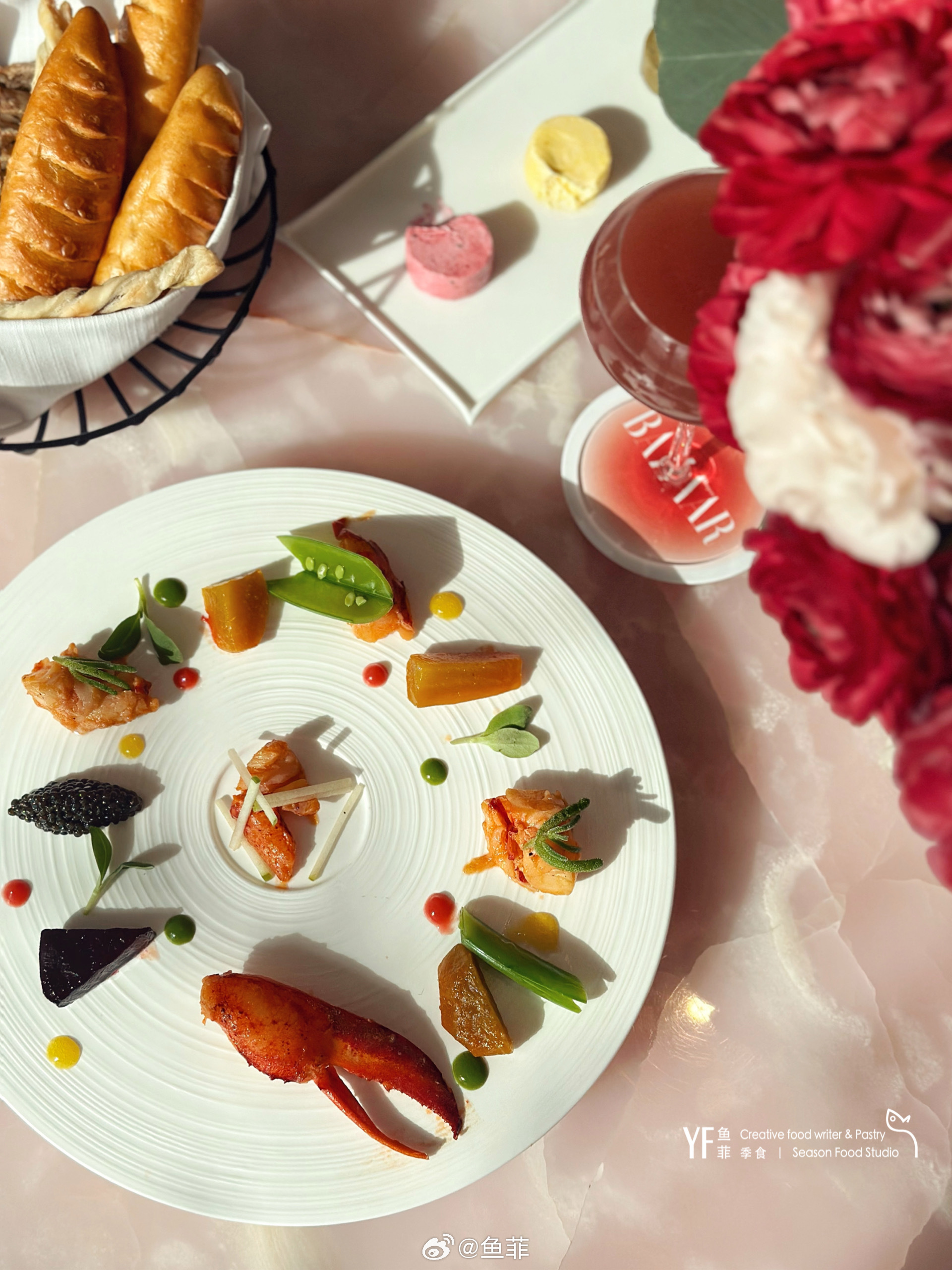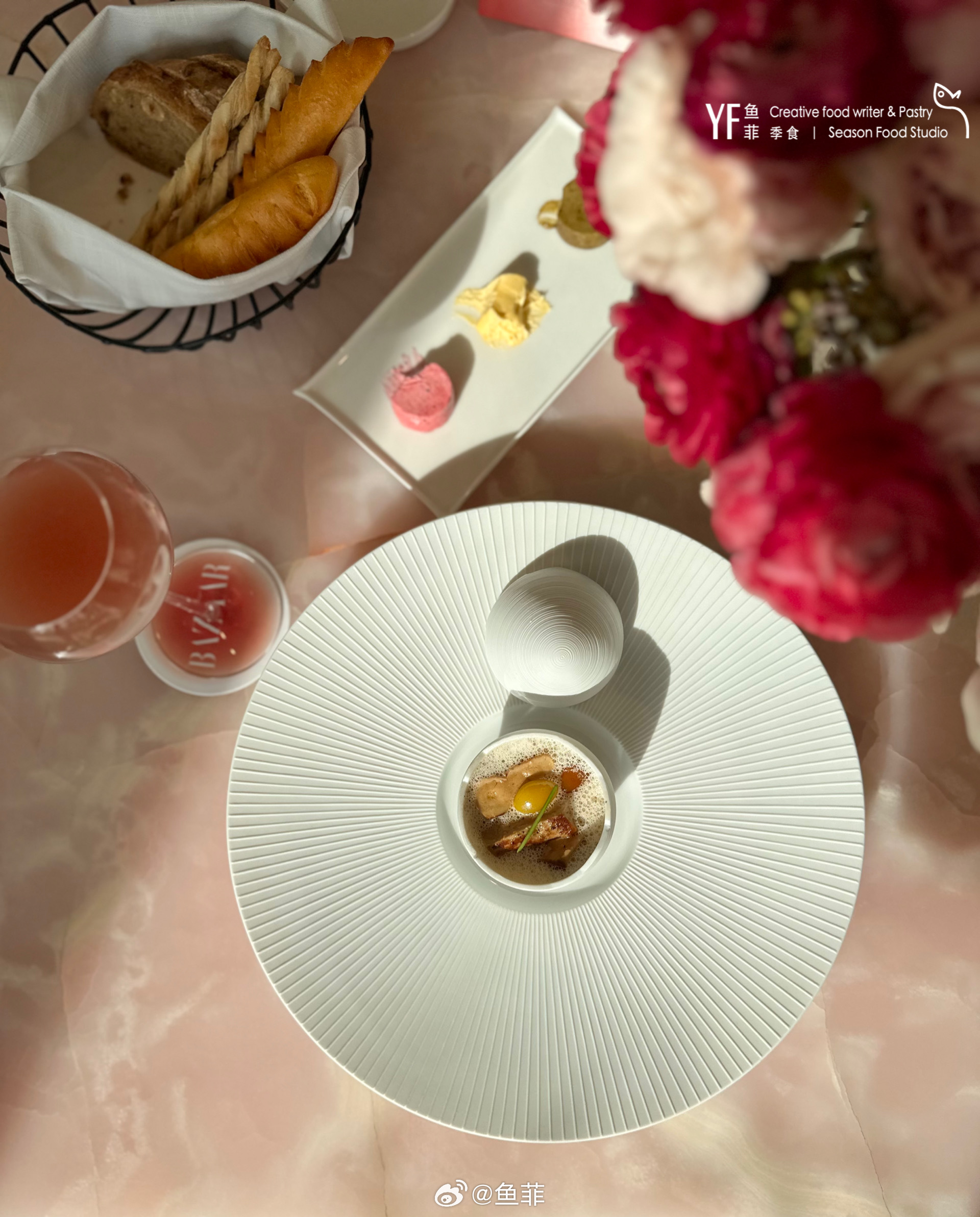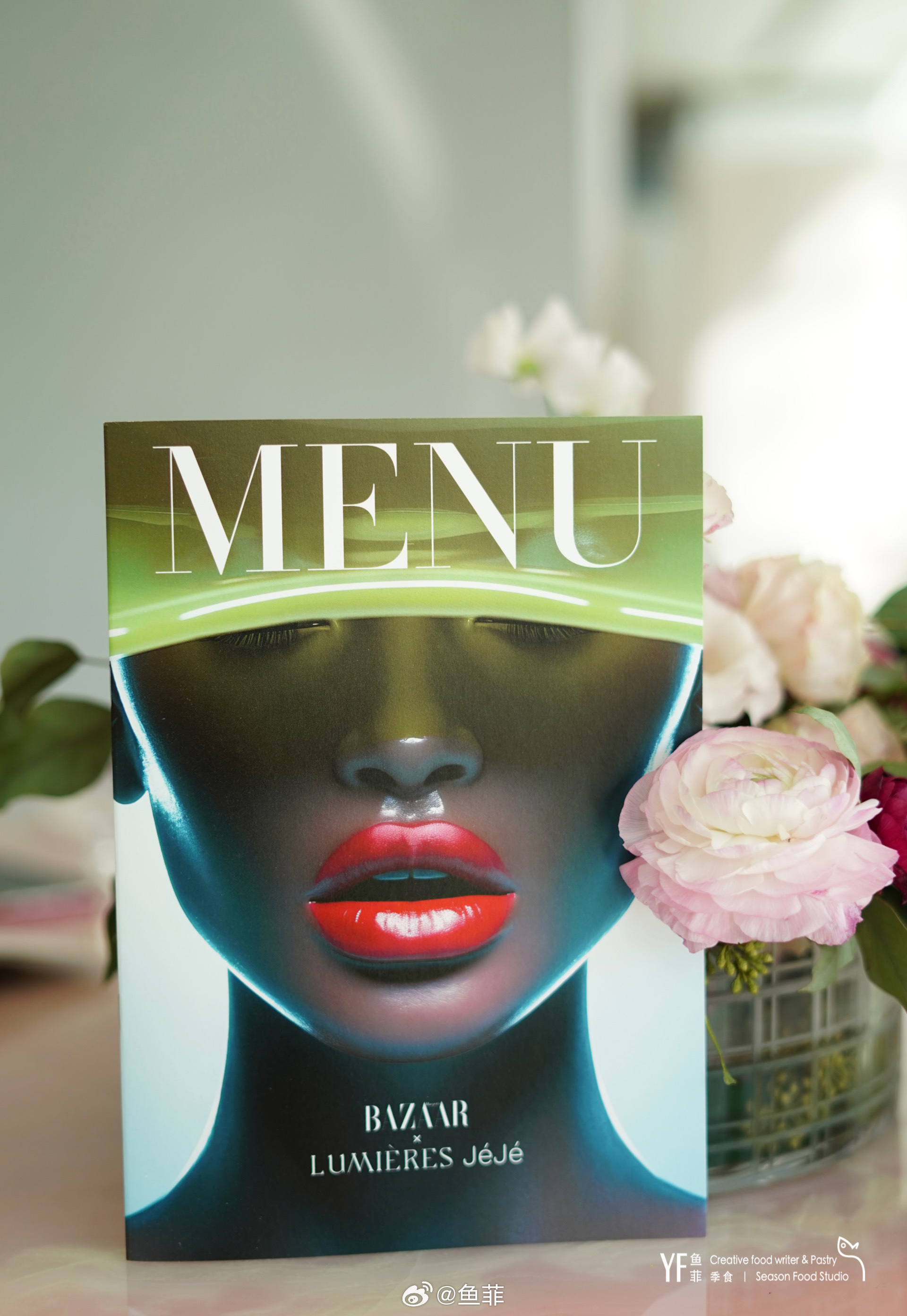 菜单配色翠谷焰尘,对应着每道菜的上古诗句,一如“风,起于青萍之末”的柔和,沐光而坐的午餐,让我也时尚了一把