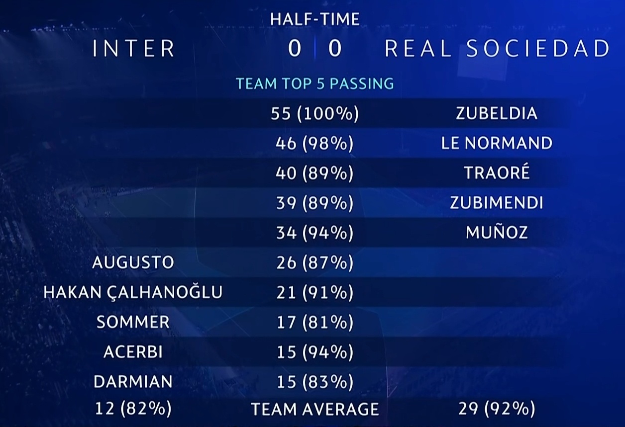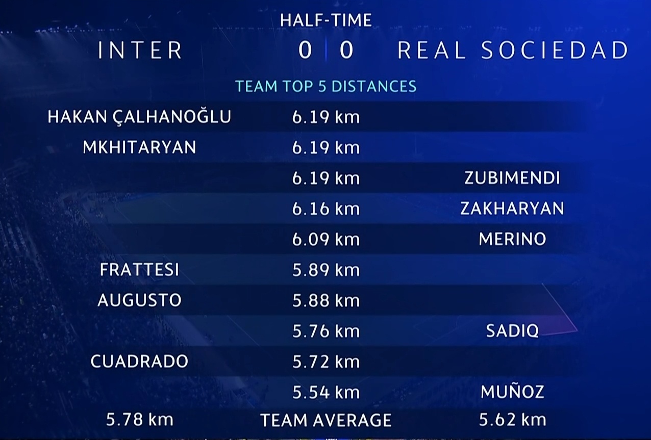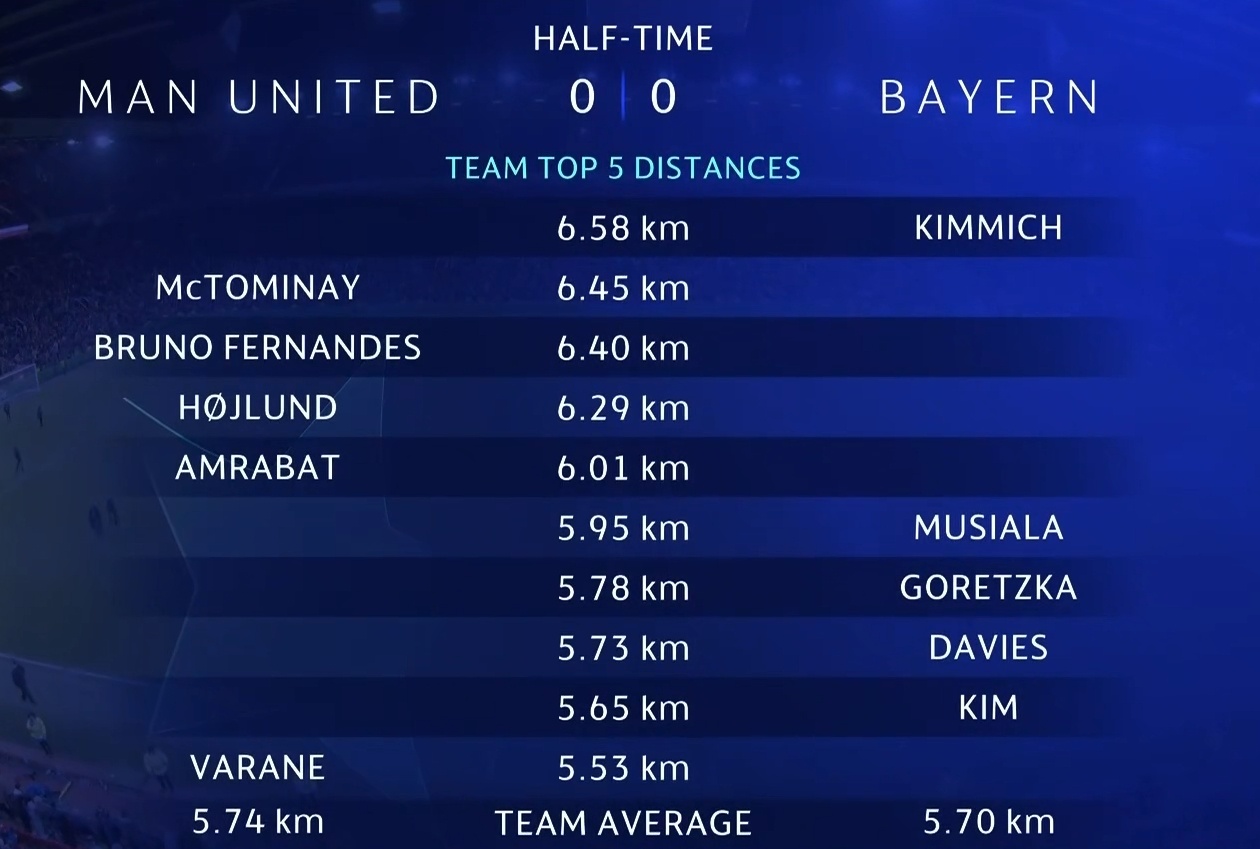 半场跑动数据#国际米兰vs皇家社会##曼联vs拜仁#