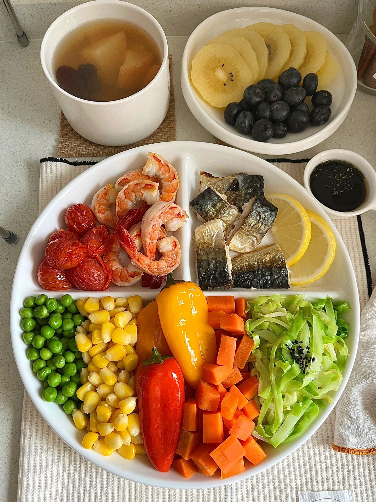 🏷今天早餐食物合集 🦐鲜虾🐟青花鱼🍅小番茄🍋柠檬/青豆 🌽玉米🫑彩椒🥕胡萝卜/绿甘蓝🫐蓝莓 🥝奇异果🍐雪梨/红枣/枸杞/黄冰糖 - 近期天气又进一步转冷❄️ 宝子们可以多熬煮一些🍐雪梨热饮 来润养肺部🫁 抗炎饮食也要坚持 减少😷患后可能的肺🫁炎来袭 -