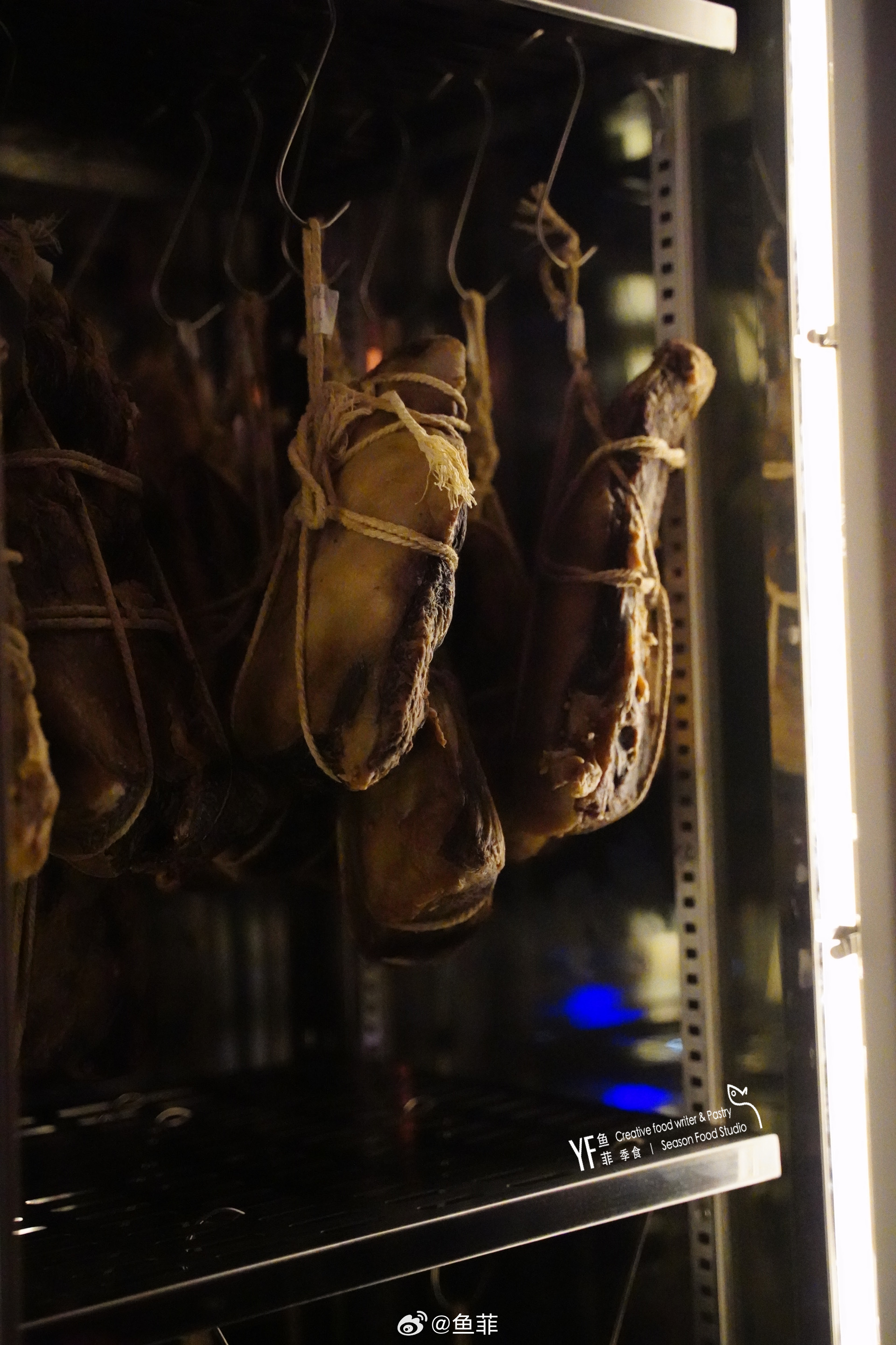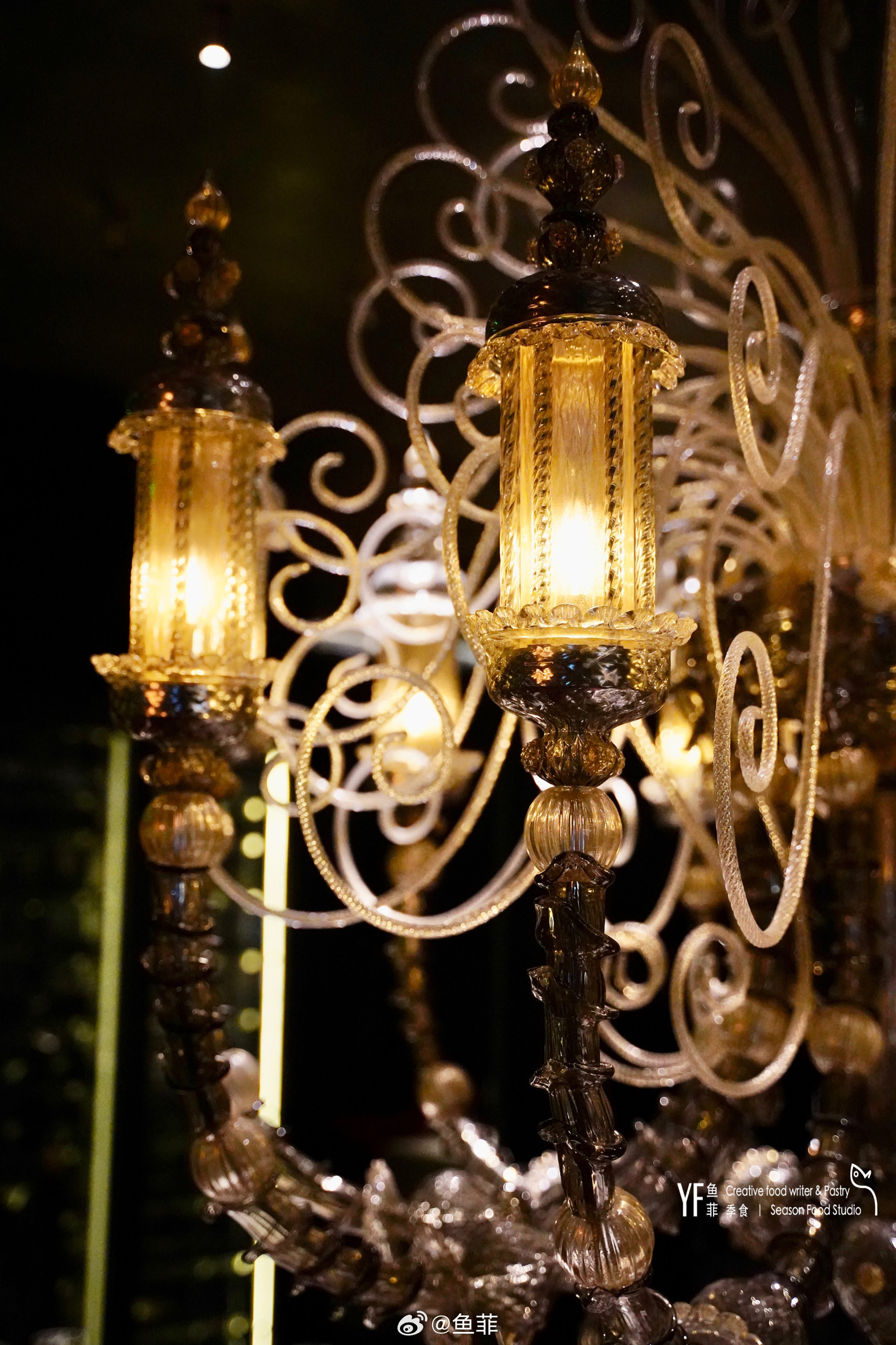 入口处的熟成牛排柜以及酒水吧,简洁明了,特别惊艳的是吧台旁边的那张8人长桌上一米多长直径的水晶吊灯,优雅复古,后悔没有穿一身西装,可以扮个贵公子。