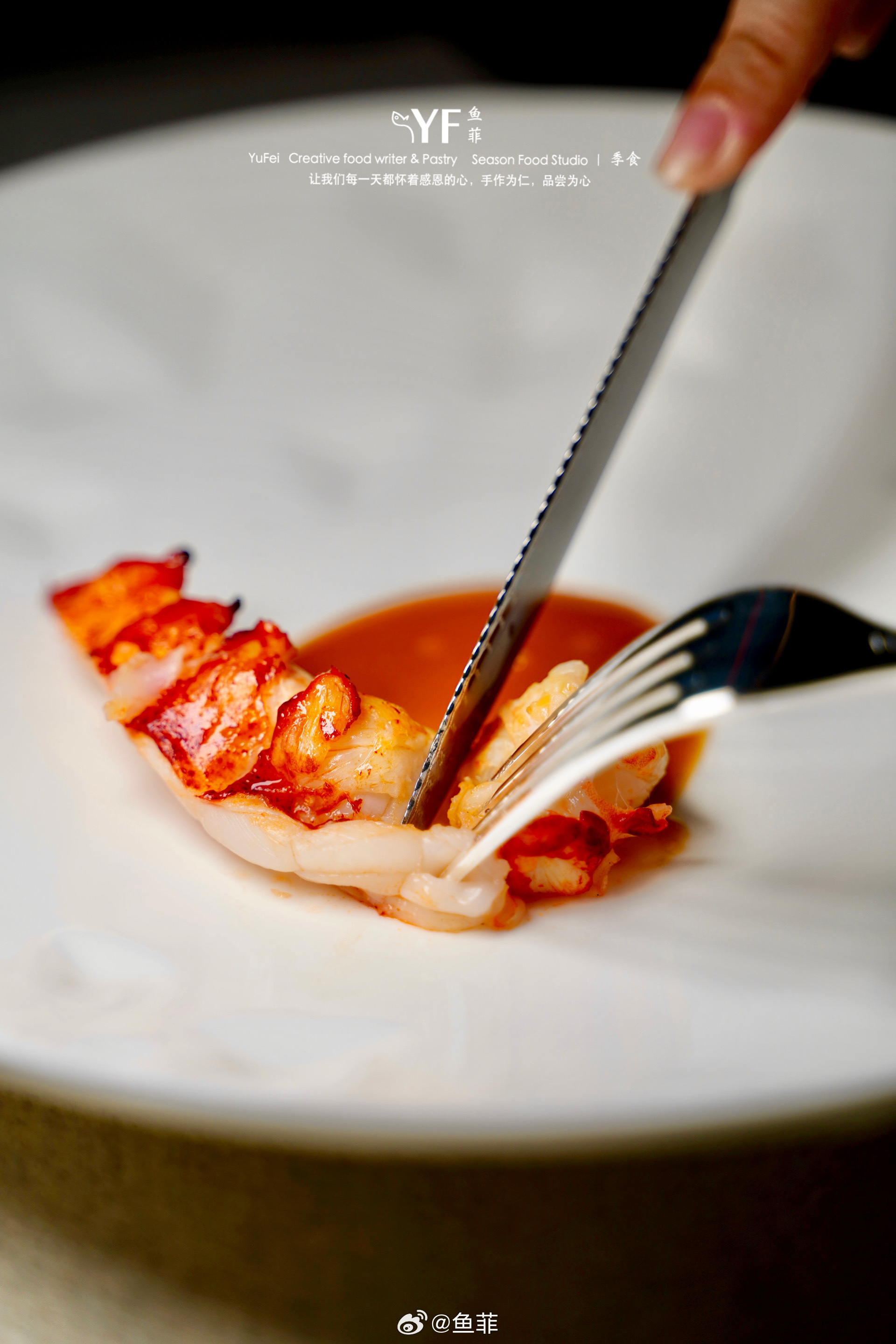 龙虾三吃,一吃是法式龙虾咸布丁,我个人还是比价偏爱甜口的;二吃是用龙虾钳立的肉放入麻薯做的面团里,再用龙虾籽焙烤后研磨成粉,洒在麻薯上,喜欢!三吃是用龙虾壳熬制的黄油,低温慢煮龙虾尾,鲜甜弹牙。