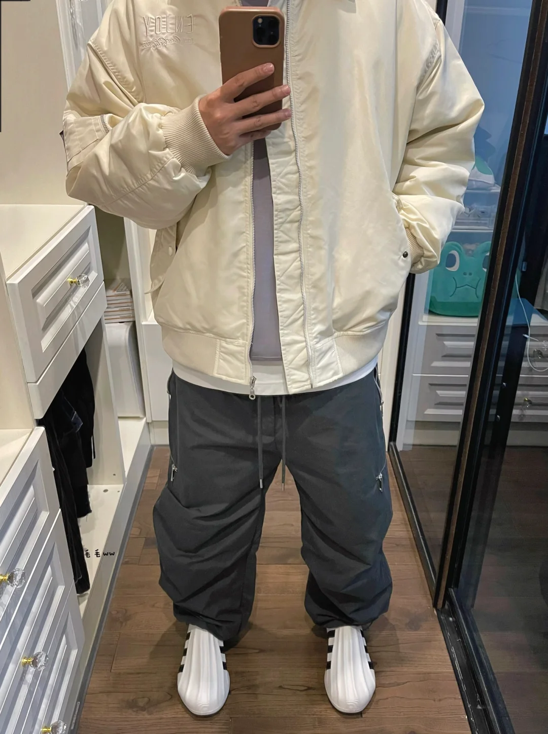 -飞行员夹克,boxy的短宽版型;秋冬叠穿利器,又到了人手一件bomber的季节 . -极简的色系,不管是黑白对比、全身酷黑、还是灰色的格雷系穿搭,都能轻松拿捏 . —————— . ✏️本人178cm75kg 球鞋尺码265mm(正常EU42) . 💭以上均为我个人观点,不喜勿喷,欢迎讨论。
