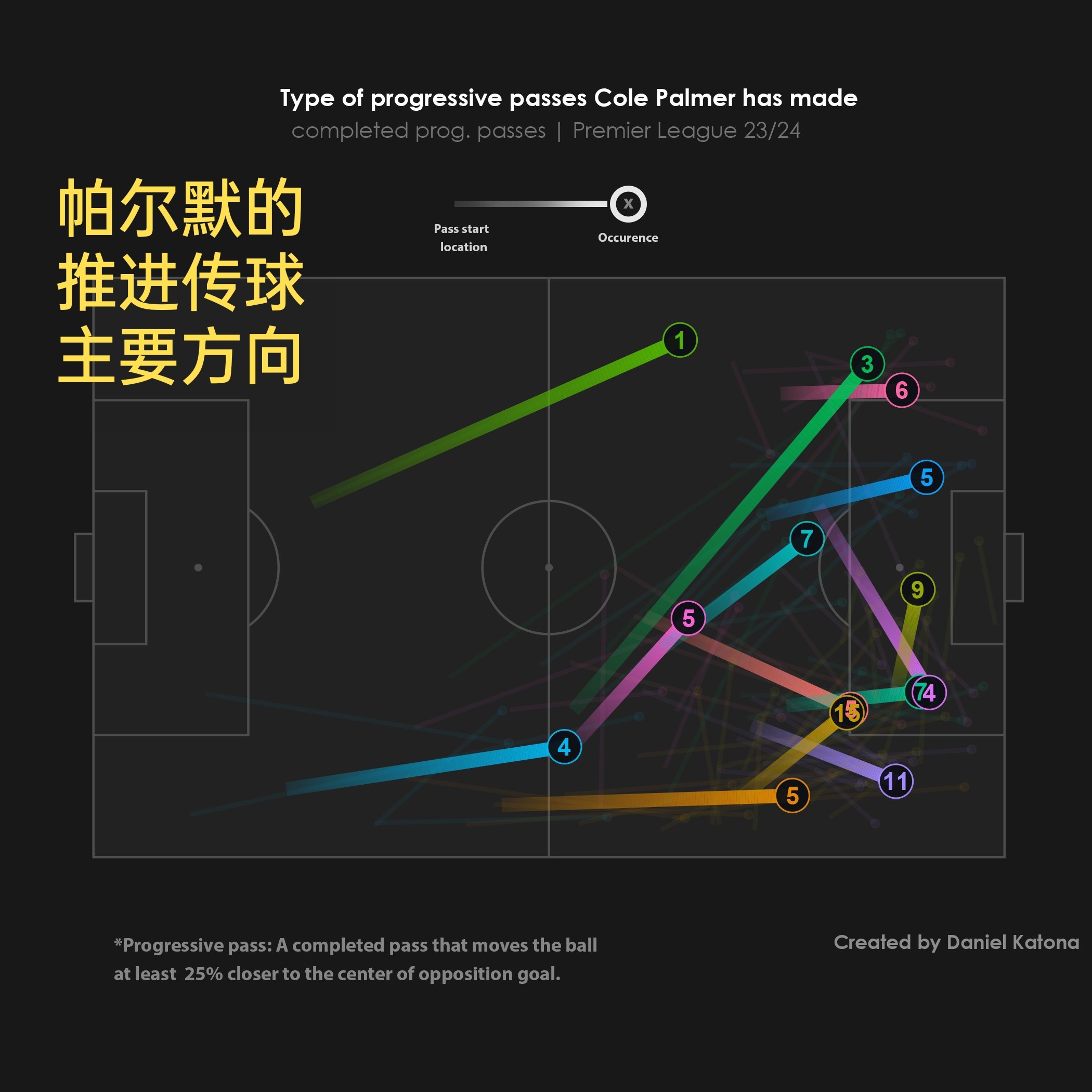 本赛季帮助球队推进最多的切尔西球员,推进传球(带球)指的是方向向前且距离必须超过皮球到对方底线直线距离的25%,由此可以看到詹姆斯和奇尔维尔缺席对切尔西影响有多大。