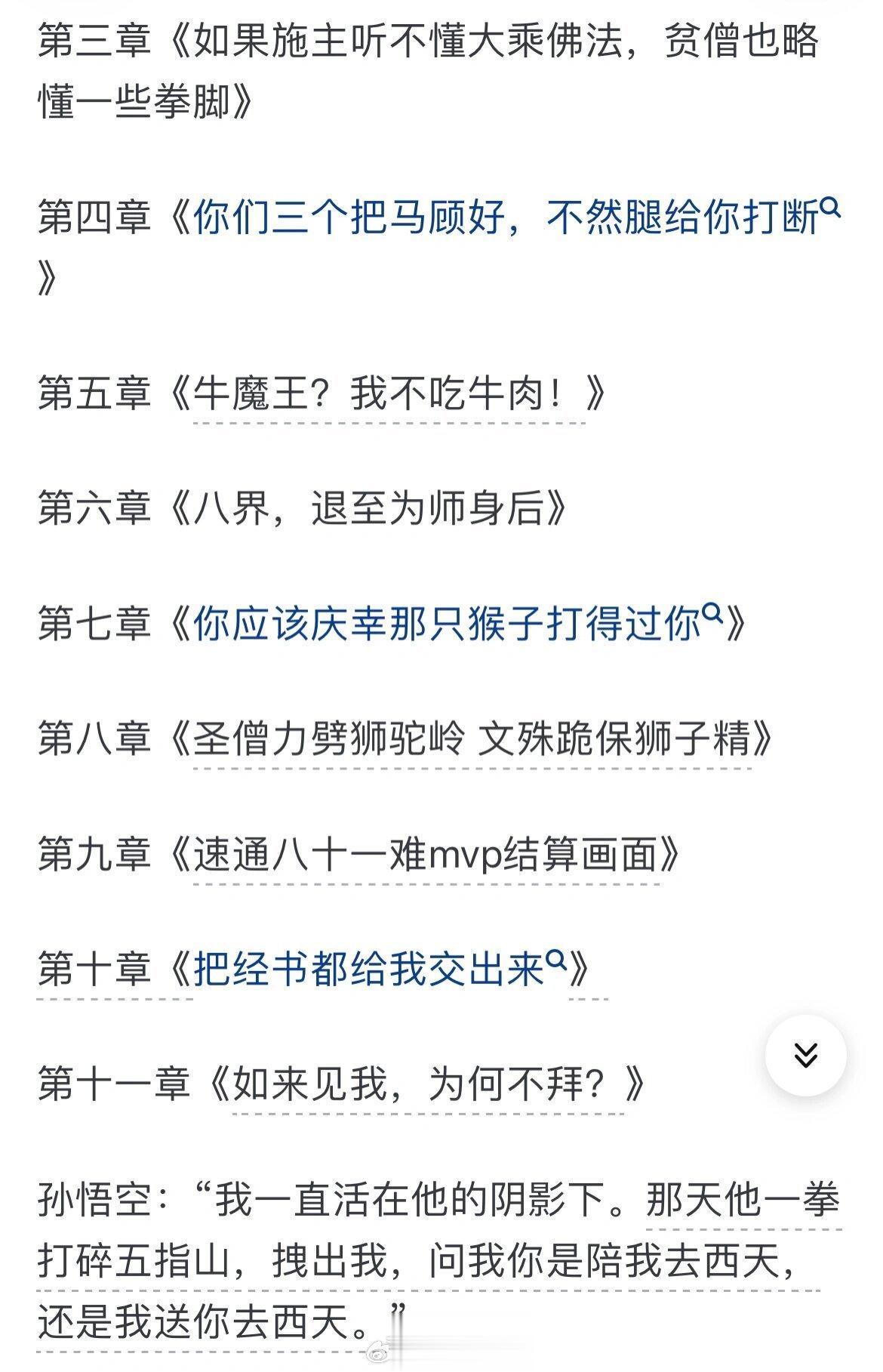 东方有一只船 68 2023-12-21 22:17 这种设定就是踩着西游记肩膀的延伸产物,必须先有西游记传统作品,然后看这个才会觉得有那么一点意思,没有传统版本的西游记这设定什么都不是 大师兄妖怪被师父抓走了 回复 12-30 08:25 对,先有西游后有西游改编,蚂蚁就算爬到巨人头顶人们依旧只会夸巨人。 诺言随风逝 回复 12-26 16:29 对,扑GAI文。