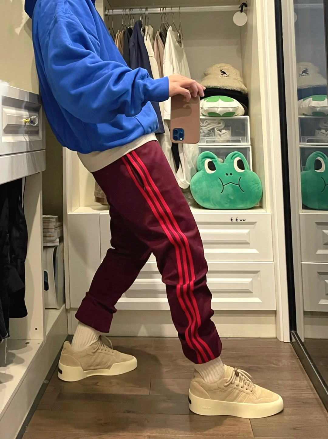 -酒红是难驾驭的配色,但红蓝CP马上就迎刃而解了;也适合节日的氛围 . -Athletics单品雀氏适配YZY的穿搭系统,感兴趣的小伙伴可以搭配试试 . —————— . ✏️本人178cm75kg 球鞋尺码265mm(正常EU42) . 💭以上均为我个人观点,不喜勿喷,欢迎讨论。