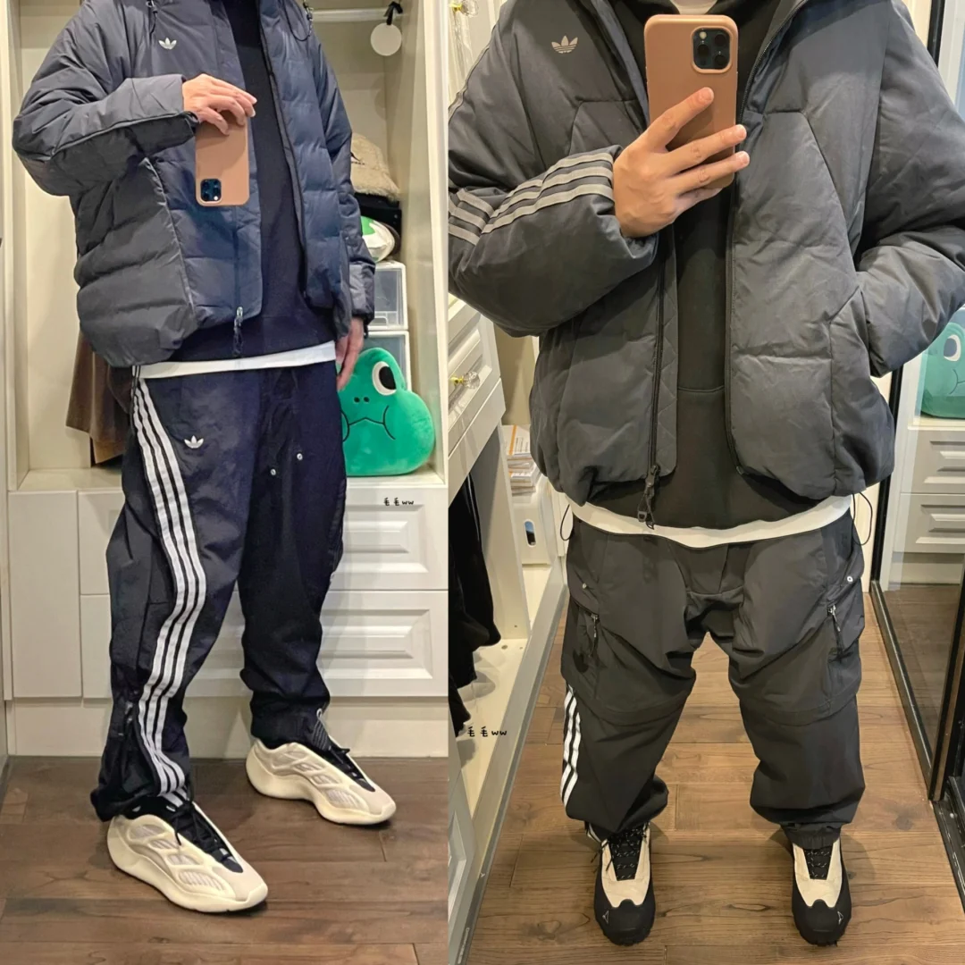 -保留了系列单品的多变性,羽绒&卫裤可玩性高,都有拼接或拉链特性,搭配属性不单一