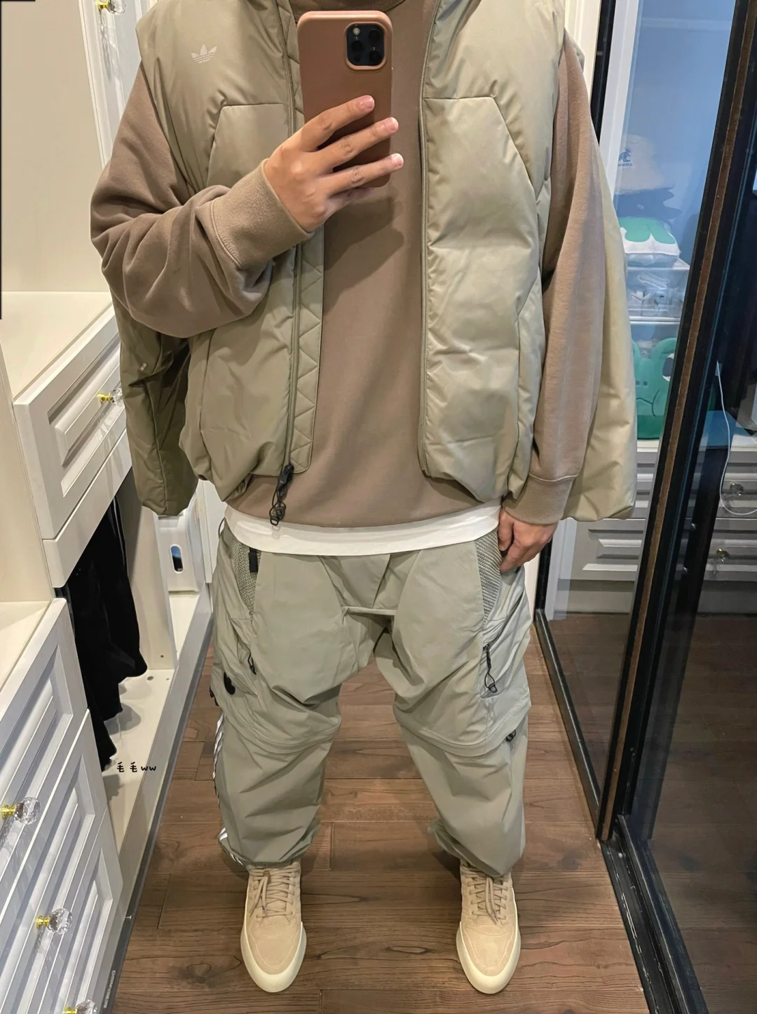 -火山脊是整个合作系列最具辨识度的背部细节,本期分别运用在羽绒服跟马甲上 . -卡其实物偏沙色,保留长袖可拆卸;填充由鹅绒变为鸭绒,面料没有水洗灰的绒面手感 . —————— . ✏️本人178cm75kg 球鞋尺码265mm(正常EU42) . 💭以上均为我个人观点,不喜勿喷,欢迎讨论。