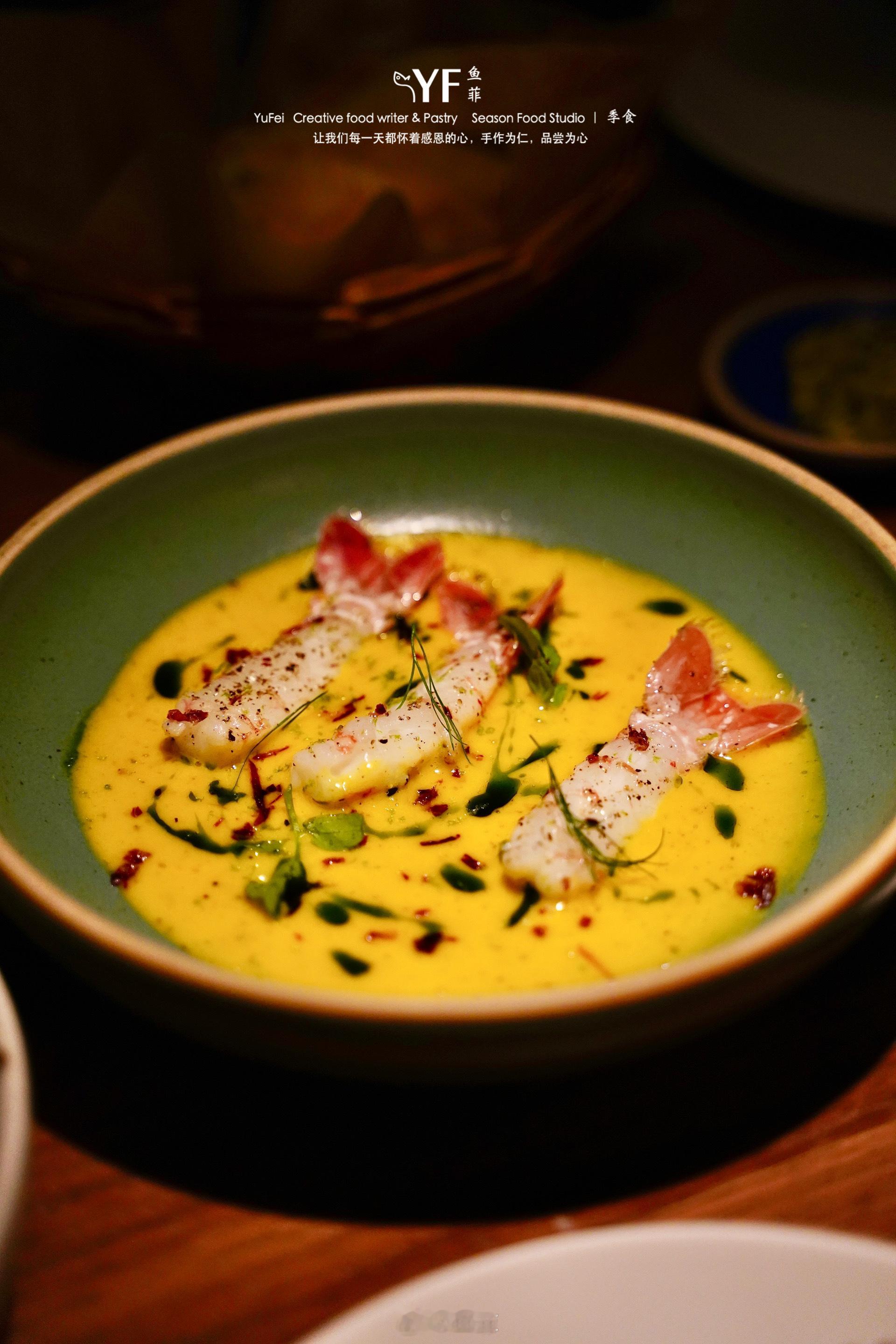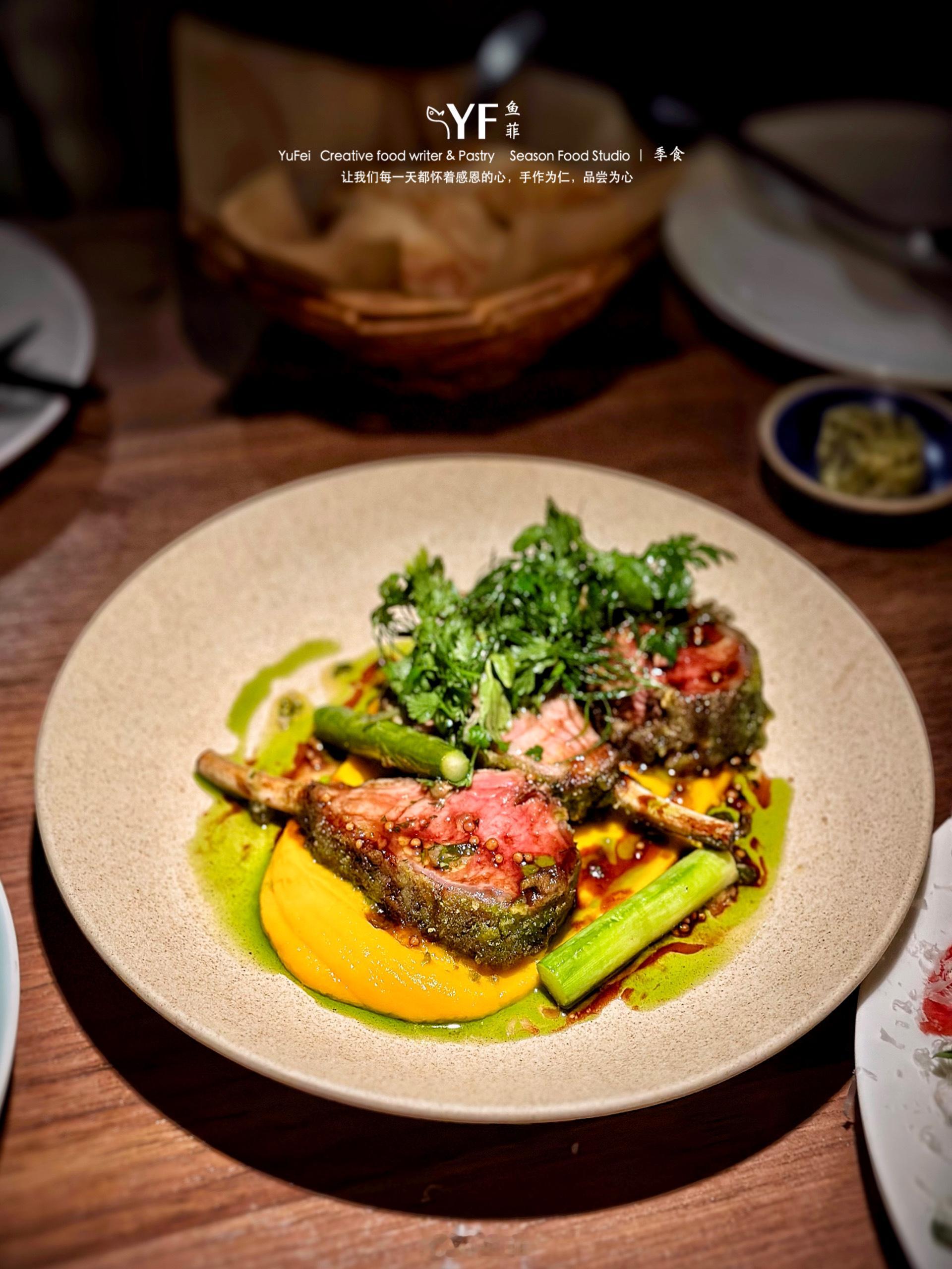 5-6分熟度的羊排,很嫩,底部搭配的酱应该是山芋泥为主,醇厚绵密透着食材本身的甜香,很搭