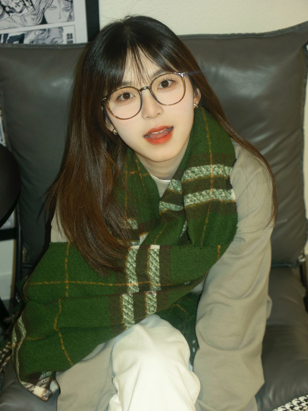 绿色的围巾冬日氛围感拉满,格子配色很复古,配大衣卫衣都很好看也很日常,跨年就打算带这个围巾啦!