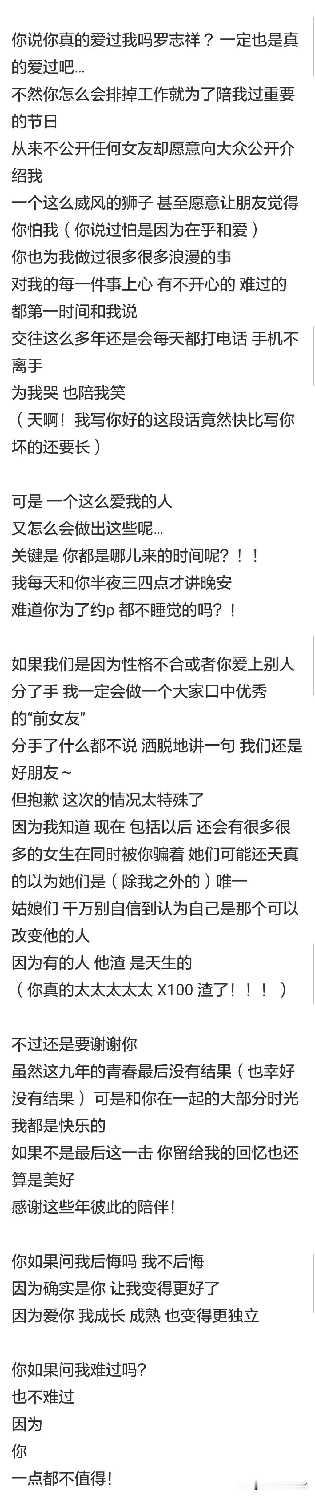 周扬青爆的罗志祥这个瓜,每一个都是猛料啊!实践证明:没几个女人能笑着从男人的手机里走出来。 九年才知道第二部手机,这是多强大的忽悠能力啊!是她给的自由过了火[我想静静][我想静静]