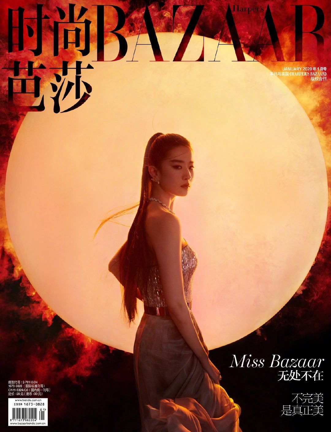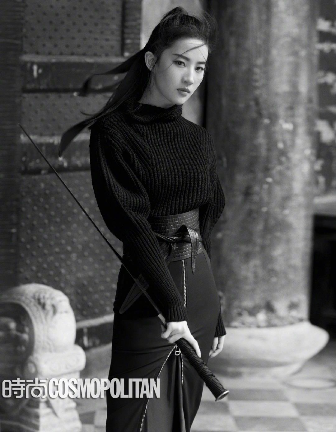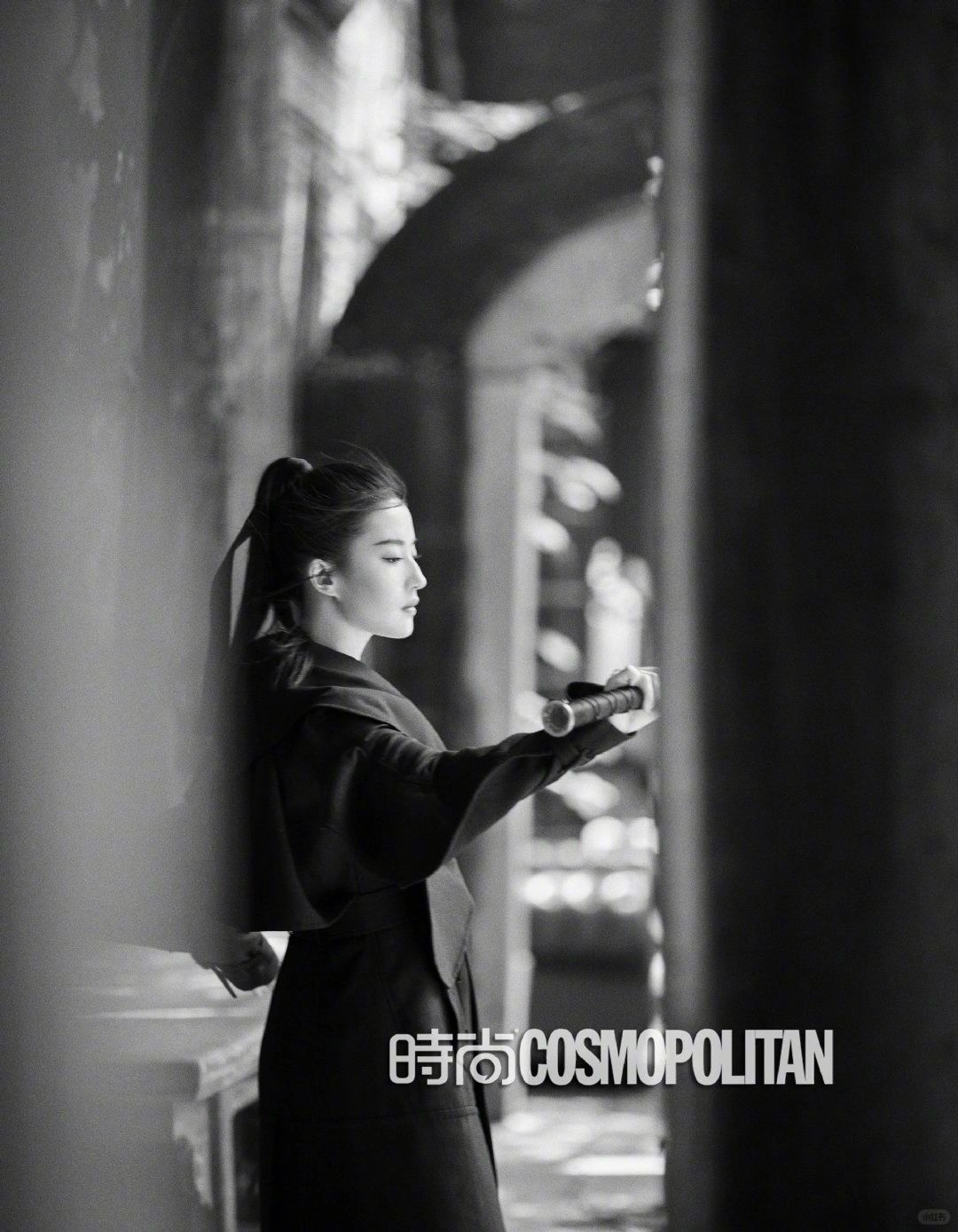 亦菲身上兼容两种风格:水之柔,玉之润。水虽至柔,但也至刚,滴水穿石,“天下之至柔,驰骋天下之至坚。”容颜绝秀,内心有硬度,如同一块玉,“有匪君子,如切如磋,如琢如磨。”她与富含诗意与韧劲的意象,如绿竹、白梅、宝剑有天然的契合。《时尚COSMO》24周年刊封面她抱剑而立,秀丽侠女,快意江湖;2019年《嘉人》5月刊她是竹林中的墨客,女力觉醒,熠熠发光;2020年《时尚芭莎》一月刊,花将军回头而望,尽显飒爽。谦谦如玉,铮铮若铁,不正是对亦菲的注解吗。