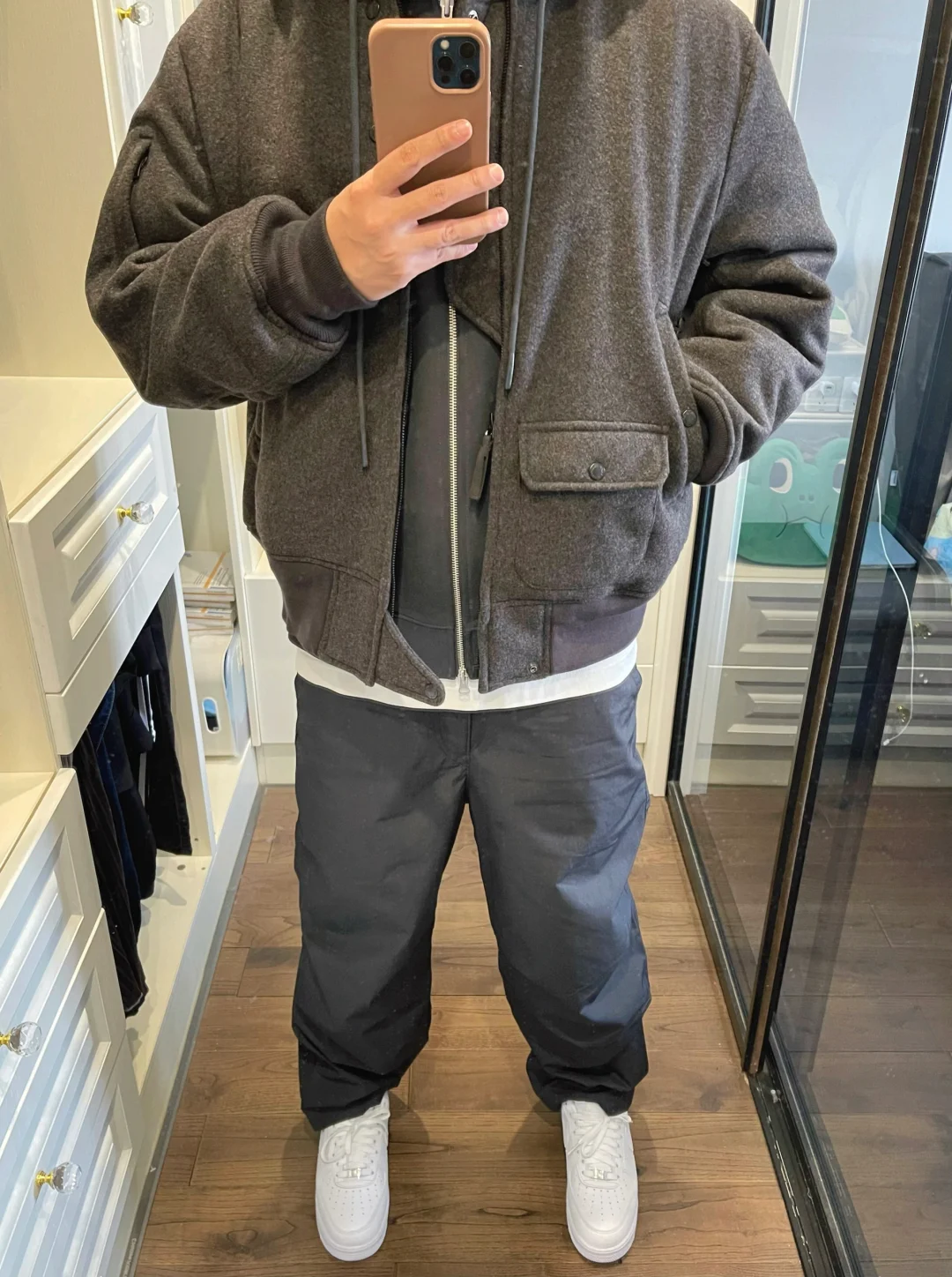 -bomber夹克,合身&宽松呈现效果完全不同 -好消息是,EG系列,从联名打成了性价比款 -配色选择没有太多,偏好岩石灰,格雷系穿搭 . —————— . ✏️本人178cm75kg 球鞋尺码265mm(正常EU42) . 💭以上均为我个人观点,不喜勿喷,欢迎讨论。