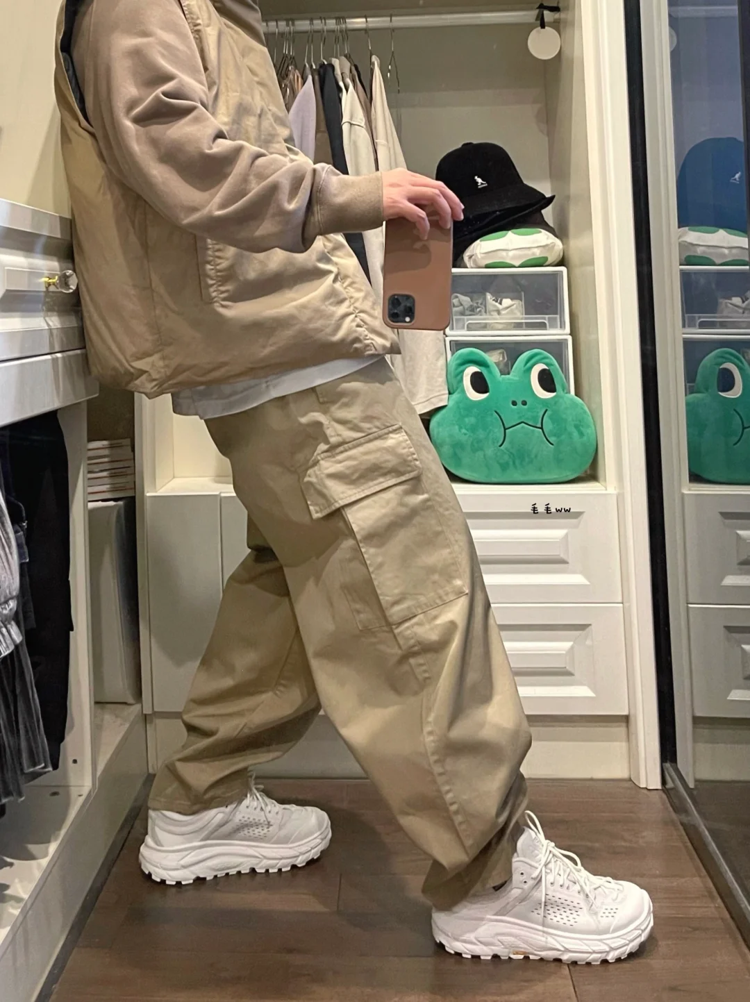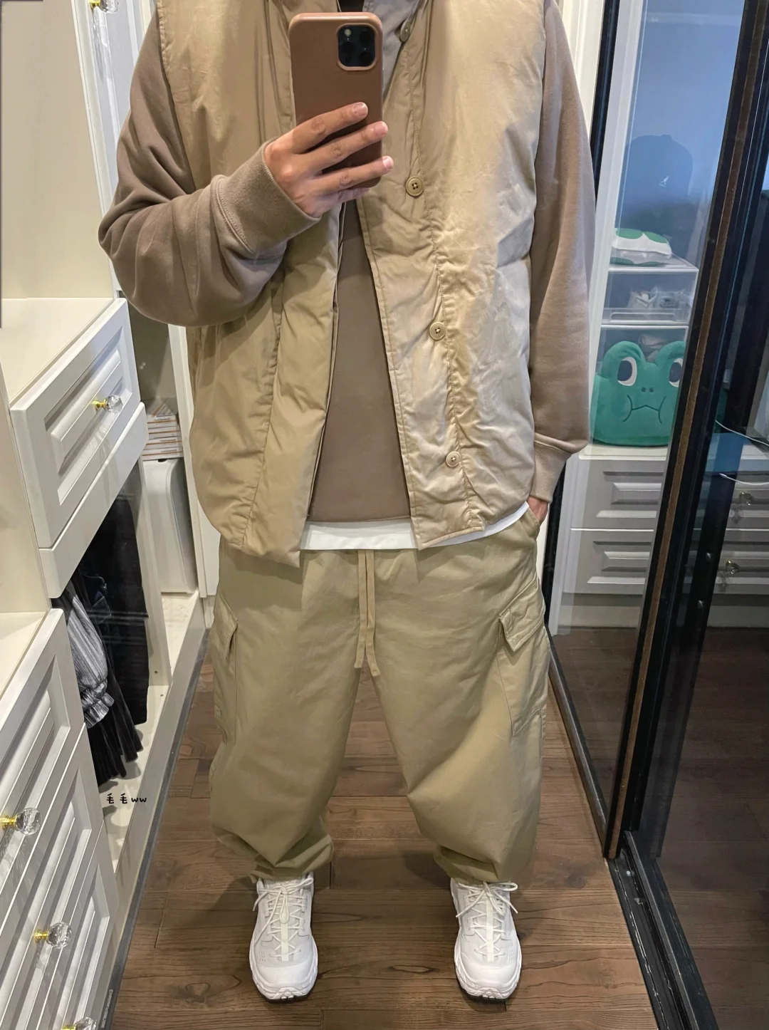 -入冬马甲叠穿,卡其色与工装风真绝配了 -浅棕色内搭,白色球鞋呼应,做出层次感 -选条大口袋工装裤,阔腿裤型很适合hoka . —————— . ✏️本人178cm75kg 球鞋尺码265mm(正常EU42) . 💭以上均为我个人观点,不喜勿喷,欢迎讨论。