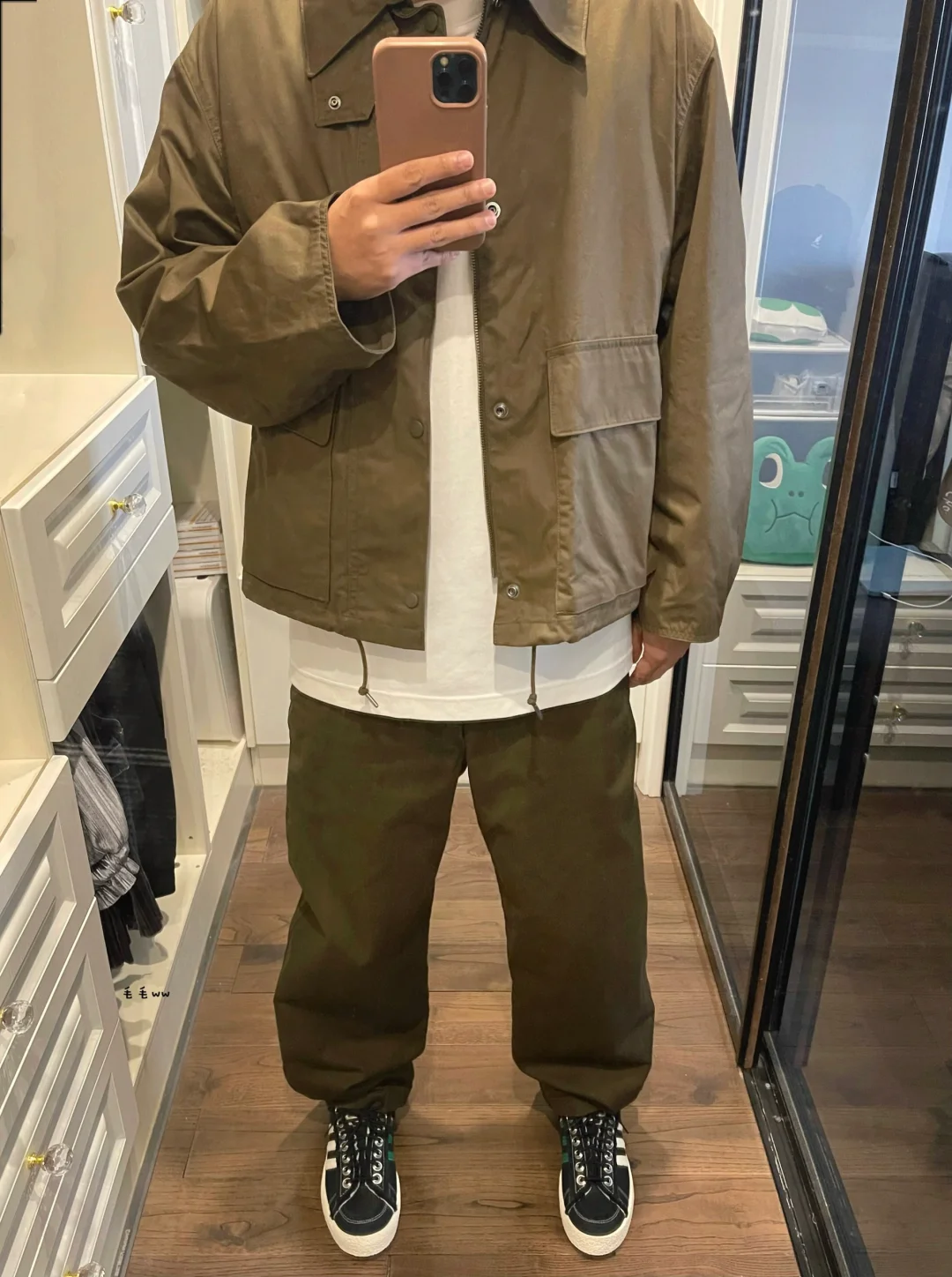 -是暖冬么,12月才冷下来,1月又回温了 -这周居然回到20度,春季穿搭准备安排 -橄榄色系搭配,老干部夹克驾驭直筒裤 . —————— . ✏️本人178cm75kg 球鞋尺码265mm(正常EU42) . 💭以上均为我个人观点,不喜勿喷,欢迎讨论。