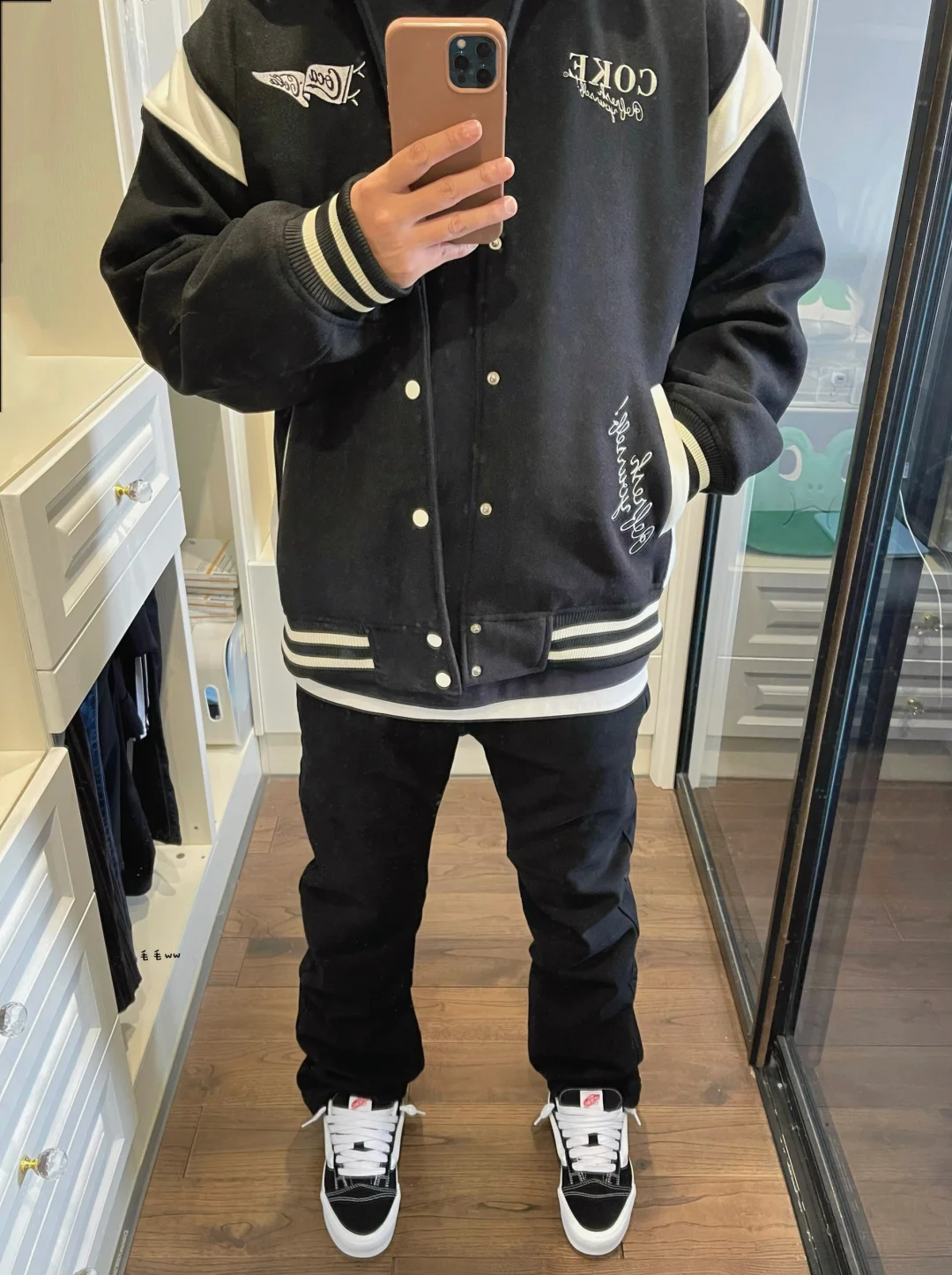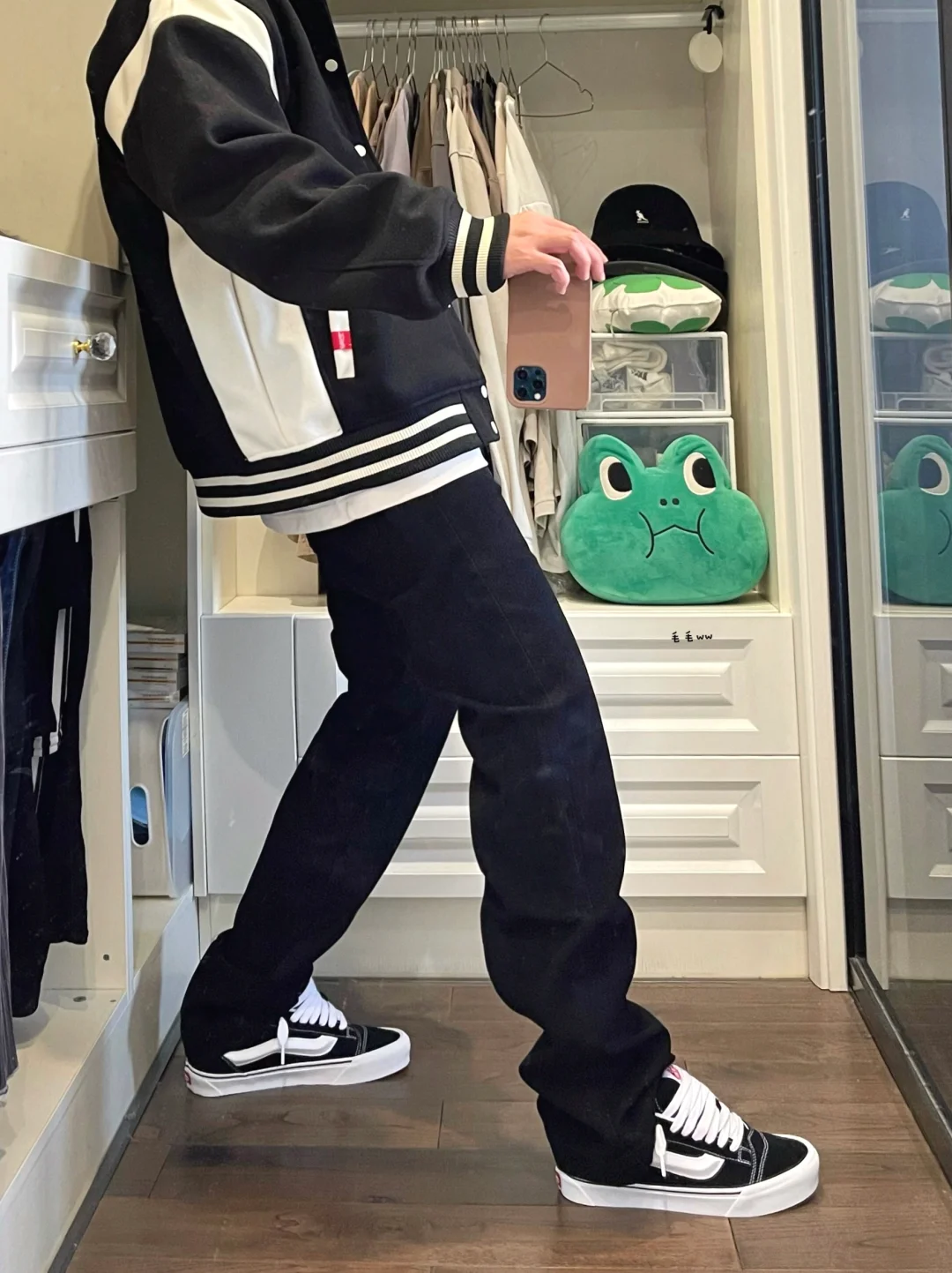 -万斯怎么穿,建议选黑色试试;不管是old skool还是knu skool,黑白og一定是首选 . -黑色棒球夹克,白色内搭叠穿,下装配合一条黑色丹宁裤,整套效果干净有层次还显瘦 . —————— . ✏️本人178cm75kg 球鞋尺码265mm(正常EU42) . 💭以上均为我个人观点,不喜勿喷,欢迎讨论。