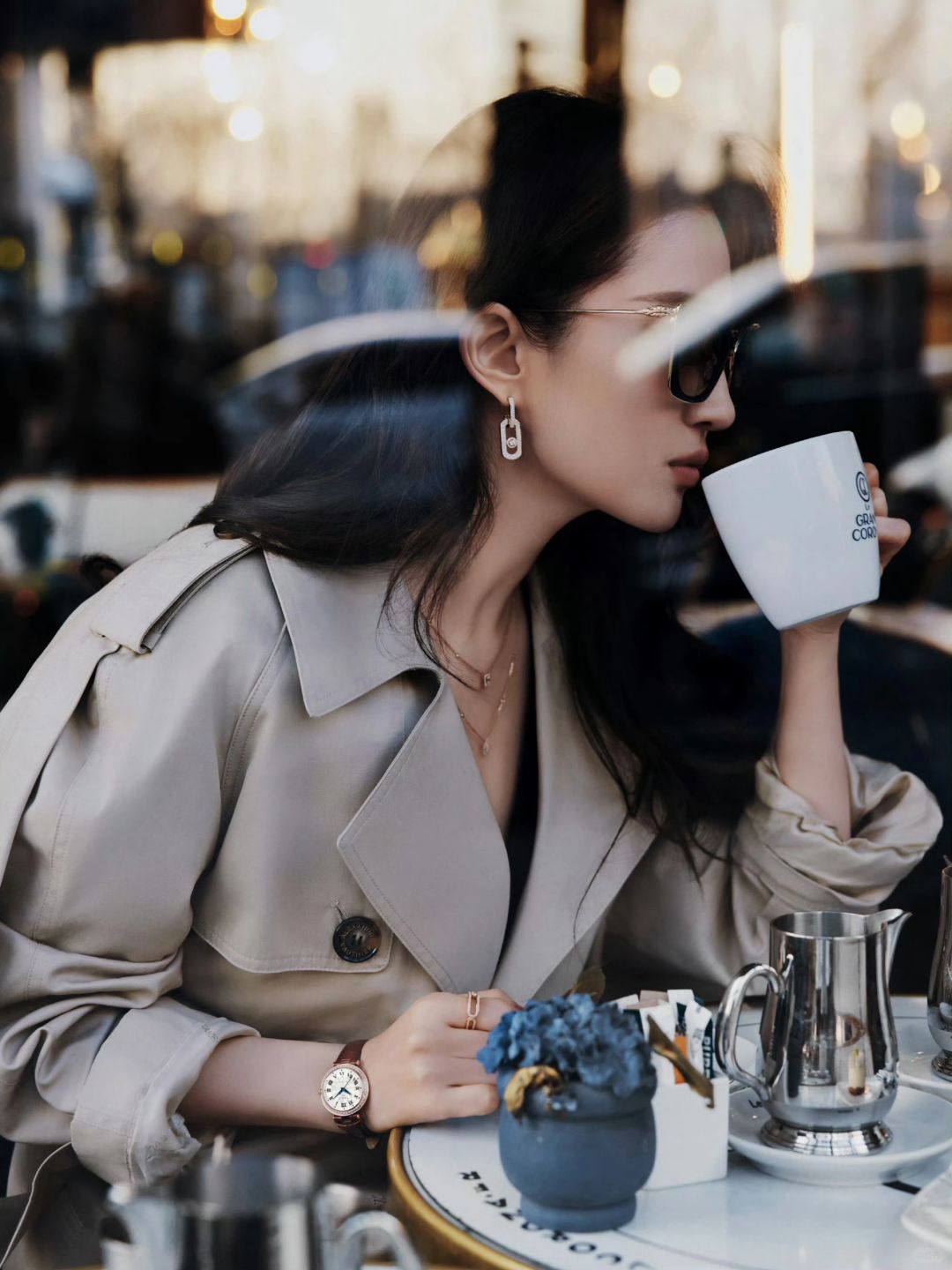 如果用六个字来形容巴黎的浪漫,“刘亦菲在巴黎”足以,她的名字加上巴黎这个城市,让人想起雅致、文艺、轻盈的一切。戴着面纱的她,端庄又优雅,穿着风衣自然又随性,阳光洒在她的发梢温暖又迷人,喝着咖啡,让人隔着照片就能闻到咖啡的香味,三分糖,馥郁浓香,甜度刚好。