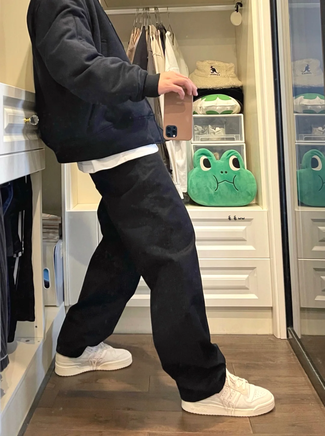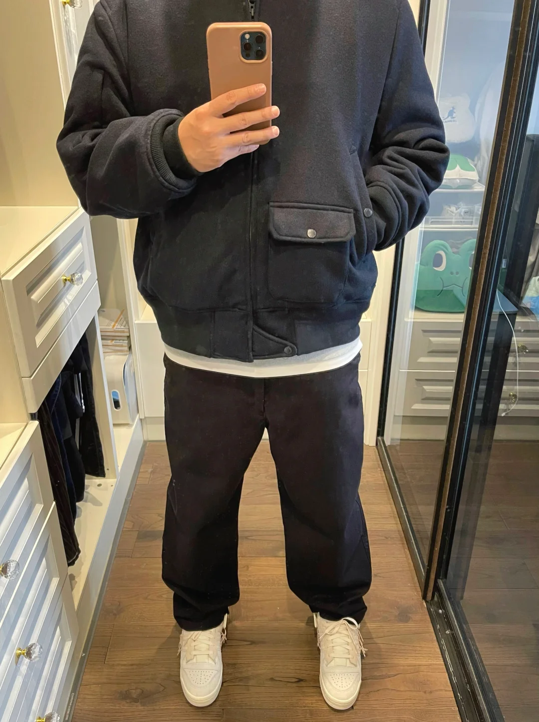-本季EG合作,这款bomber的版型俱佳,不长不短刚刚好,根据内搭厚薄选择尺码大小 . -配色方面,个人感觉偏少,并不像另外两款都是三色选择,由于没有黑色,藏青色充数 . —————— . ✏️本人178cm75kg 球鞋尺码265mm(正常EU42) . 💭以上均为我个人观点,不喜勿喷,欢迎讨论。