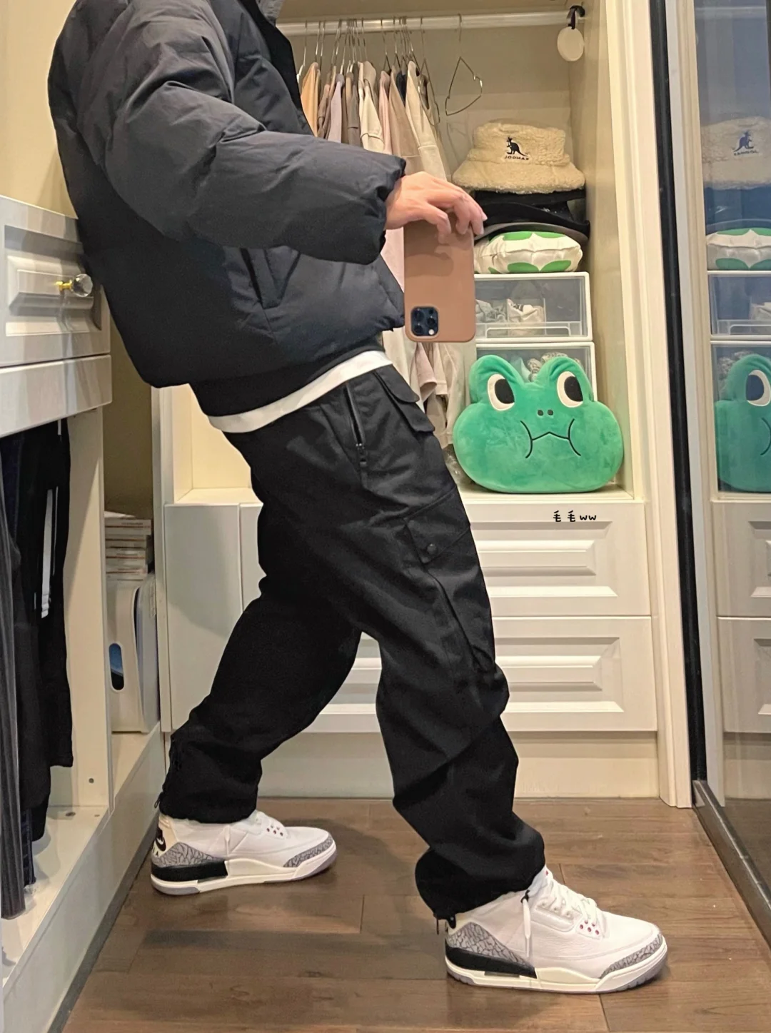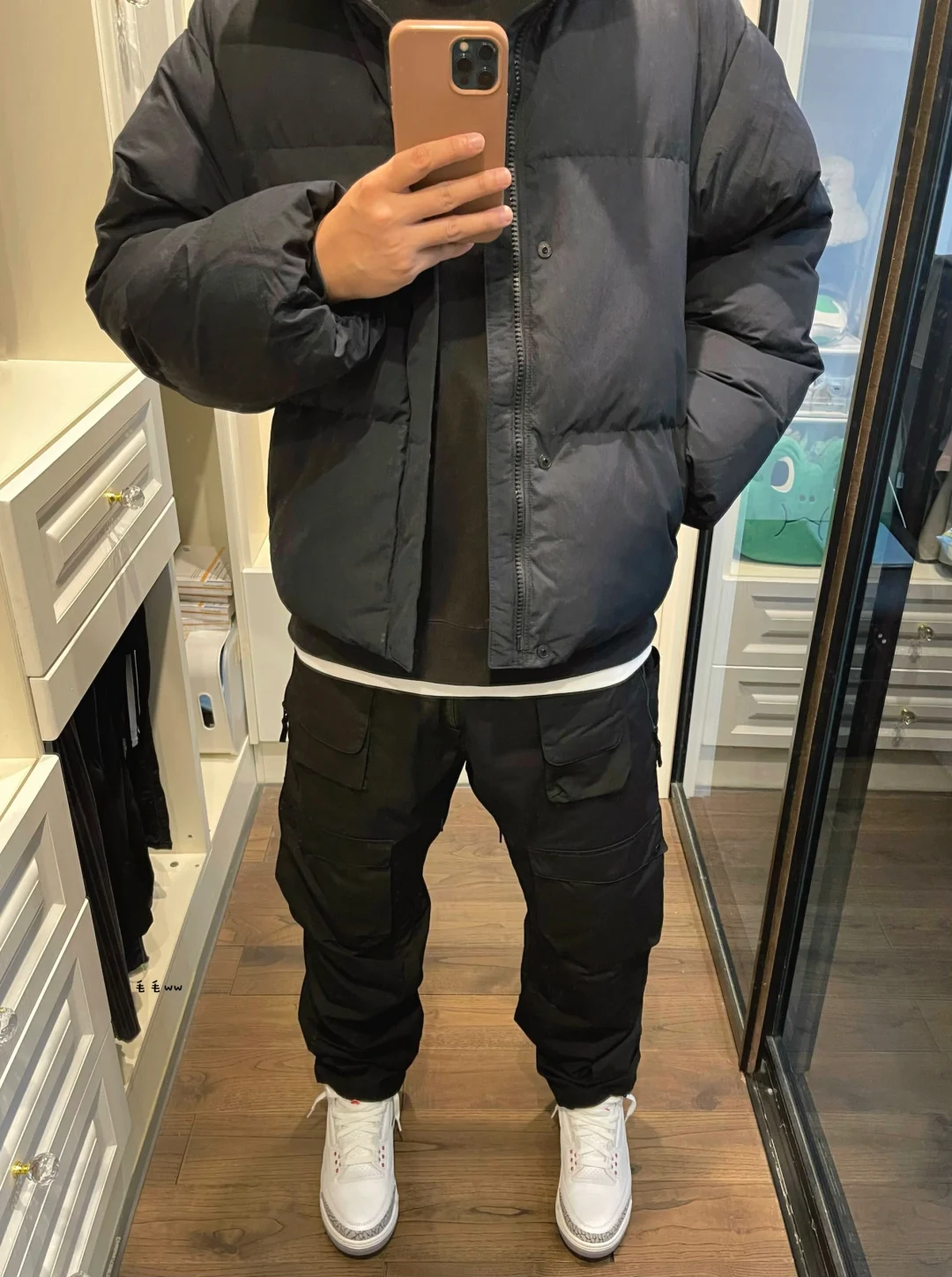 -终于降温了,这是冬天该有的样子,棉服羽绒都穿起来吧;U家棉服短宽版型,符合想要的叠穿效果 . -乔三白水泥,黑白对比色,最优秀的三代用最好的鞋型带回,不管是束口裤还是平口裤都能轻松驾驭 . —————— . ✏️本人178cm75kg 球鞋尺码265mm(正常EU42) . 💭以上均为我个人观点,不喜勿喷,欢迎讨论。