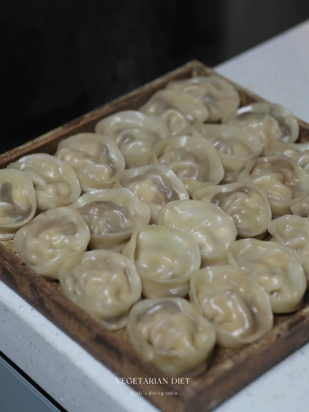 •包好的饺子放入蒸箱中蒸15分钟左右(相比直接下锅中,我觉得蒸过的饺子皮更有韧劲)。