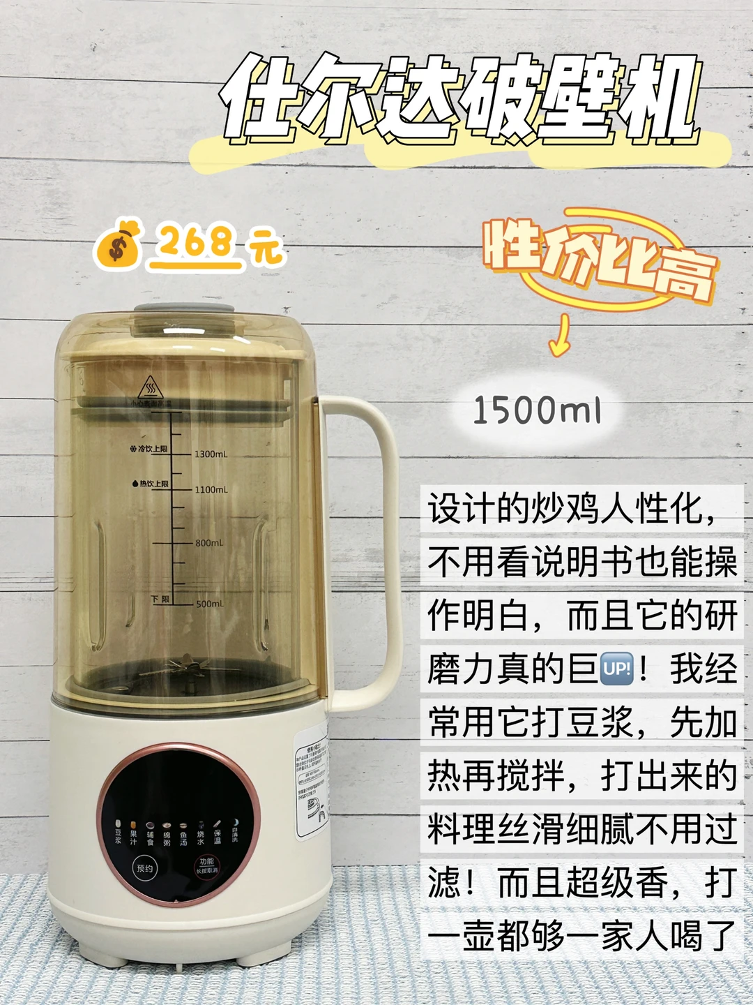 不会选破壁机的快点来做笔记啦! 教你怎么不走弯路选到合适的破壁机! 费了好大劲才整理好的 给大家分享一下我的使用感受~ ①仕尔达破壁机 ②荣事达破壁机 ③九阳破壁机 ④Olayks破壁机