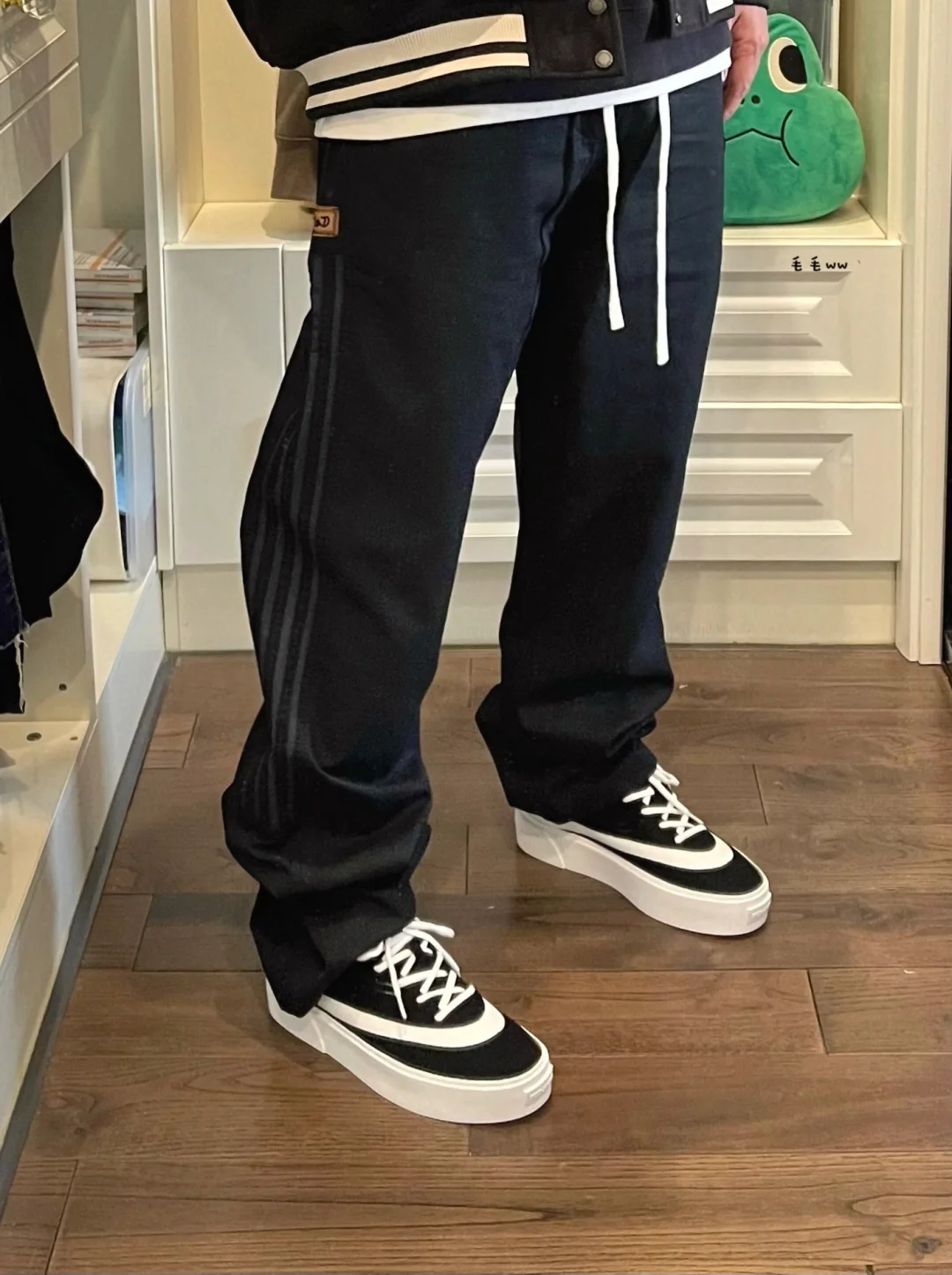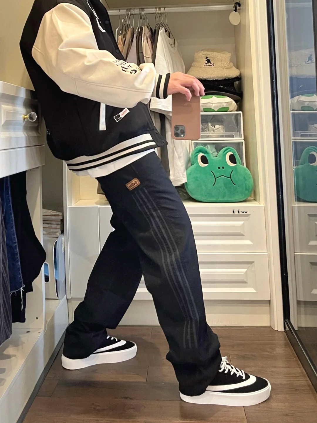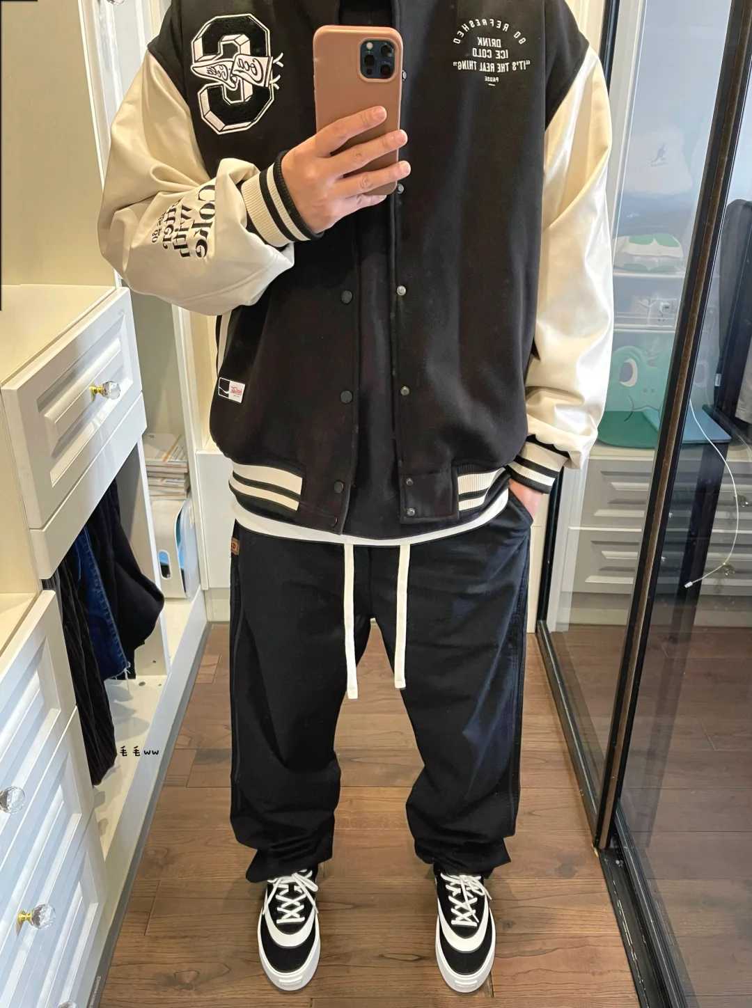 -来套通勤穿搭,有效的色系叠穿;都是衣柜里常用的单品,拼接棒球夹克,驾驭黑色直筒裤 . -新款的fault分色区块很有意思,一个弧形切割,之前也穿过白色款,容易联想到乔三藤原浩 . —————— . ✏️本人178cm75kg 球鞋尺码265mm(正常EU42) . 💭以上均为我个人观点,不喜勿喷,欢迎讨论。