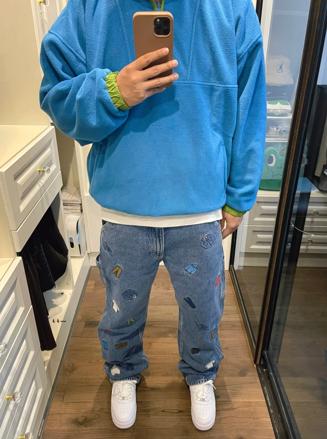 -NewVintage,老爹裤搭配,复古感拉满 -这个系列最推荐,上装跟下装一起组合下 -新年穿搭需要色彩,龙年来点蓝色系点缀 . —————— . ✏️本人178cm75kg 球鞋尺码265mm(正常EU42) . 💭以上均为我个人观点,不喜勿喷,欢迎讨论。