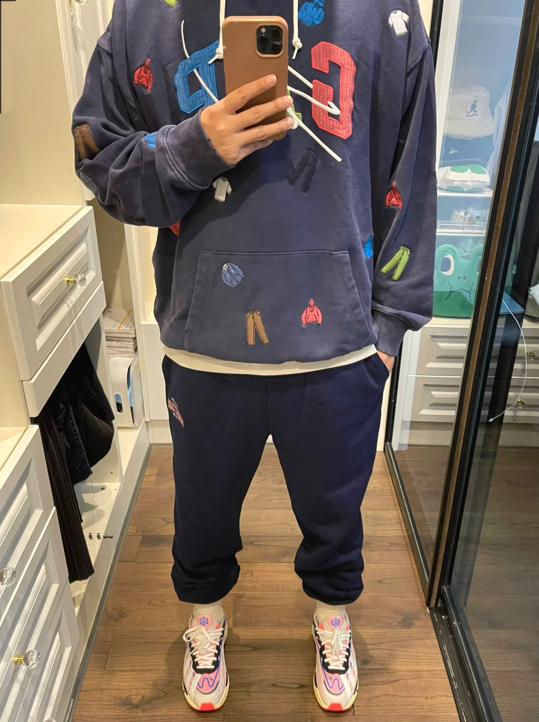 -SW系列的满印细节,令人印象深刻;最近频繁上身两件裤装,但帽衫是唯一的满印上装,非常适合新年穿搭的主题 . -有意思的是,满印图案都是发布的“缩小版”单品,且都是刺绣而非简单贴布;整体藏青色调,球鞋与灯芯绒logo呼应 . —————— . ✏️本人178cm75kg 球鞋尺码265mm(正常EU42) . 💭以上均为我个人观点,不喜勿喷,欢迎讨论。