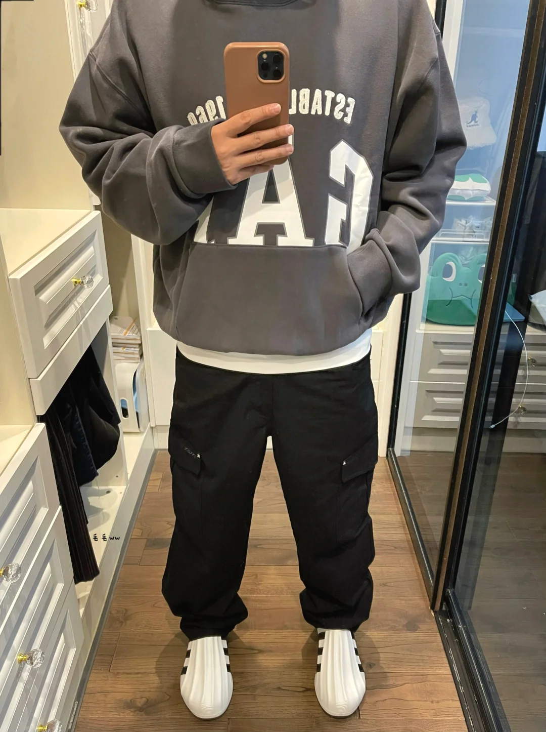 -从YEEZY GAP的合作,开始关注Gap单品 -从领口设计到短宽版型,绝对致敬和平鸽了 -内里薄绒,性价比款;一共三色,推荐灰&棕 . —————— . ✏️本人178cm75kg 球鞋尺码265mm(正常EU42) . 💭以上均为我个人观点,不喜勿喷,欢迎讨论。