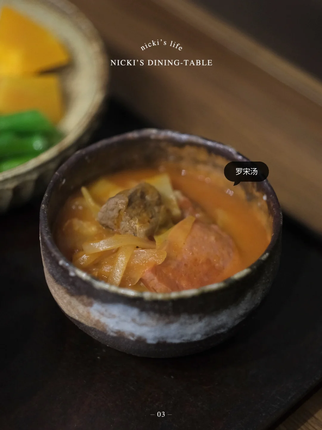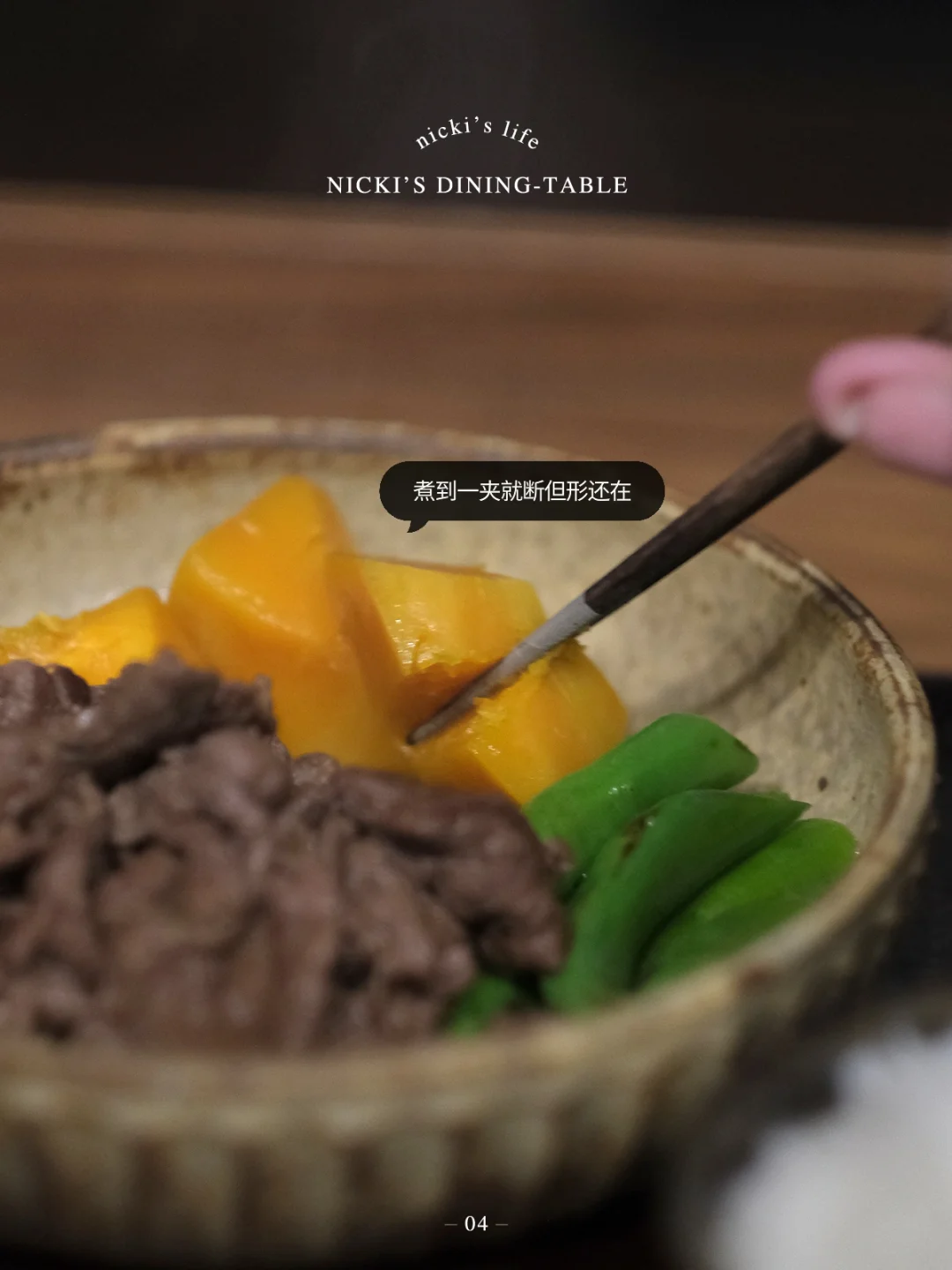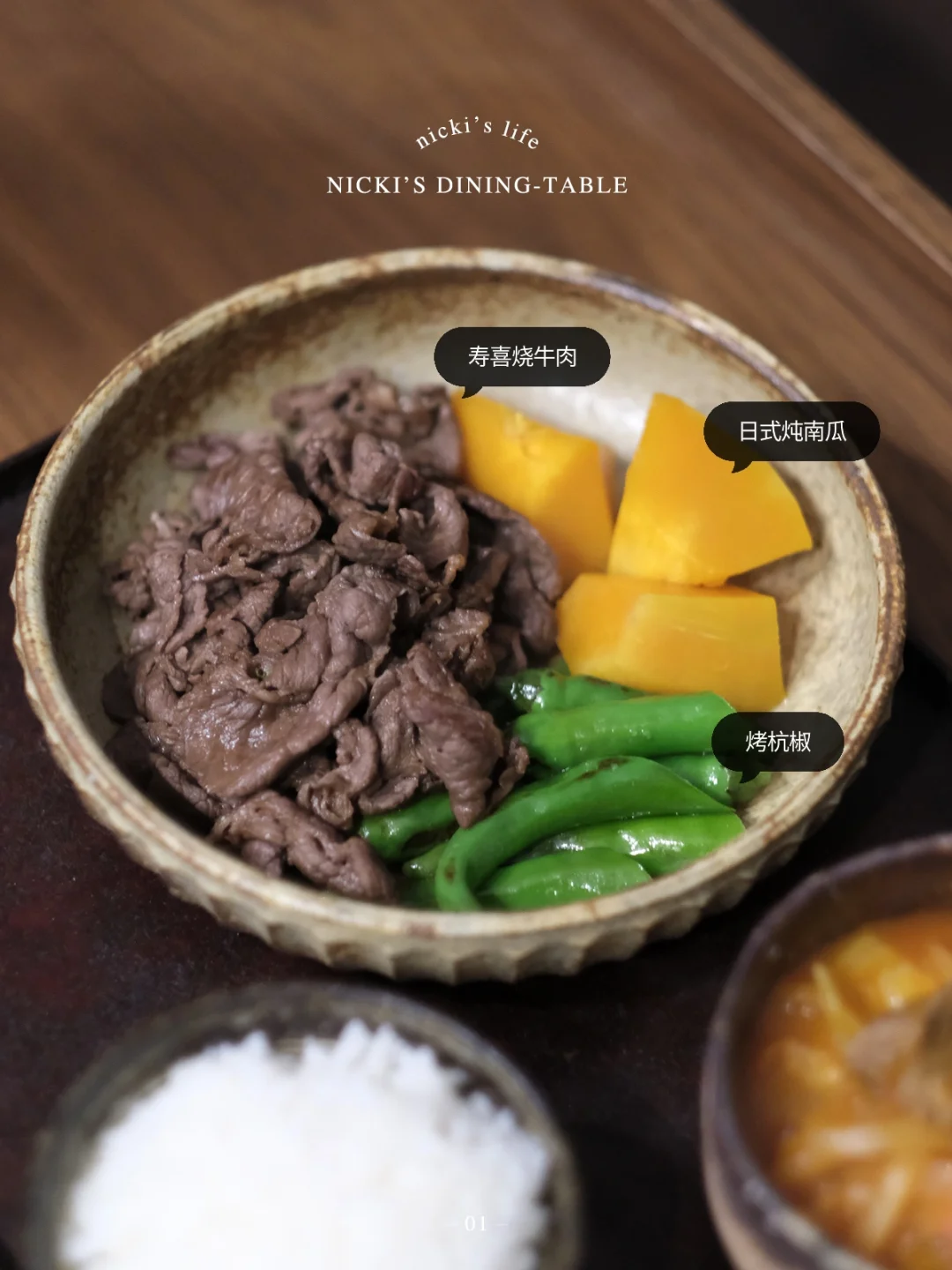 以前跟着爸妈从大年夜一直走亲访友起码得到年初四,每天在不同人家的餐桌上吃着同样的菜色。 - 如今有了自己的小家庭,除了大年夜得出去吃个饭,剩下的日子能不出门坚决不出,过着和平时休息日一样的生活,不会因为过年特地准备年味,想吃什么就做什么。 - 菜单: -寿喜烧牛肉&日式炖南瓜 -罗宋汤 🥣 作家器: -取面钵:田鹤滨守人 -圆钵: 山田洋次 -托盘:蝶野秀纪 日式餐桌|家庭料理| 器物之美|日本作家器|下饭菜|家常菜|晚餐吃什么|冬季餐桌