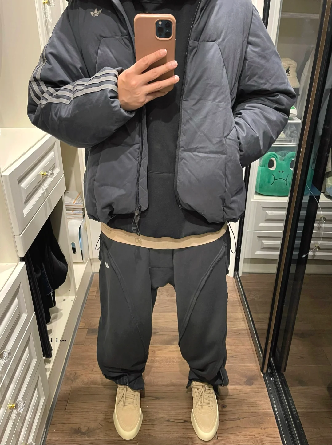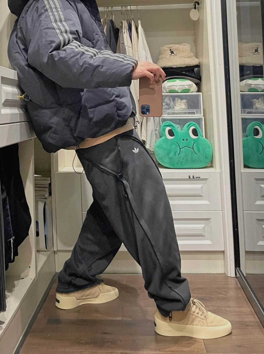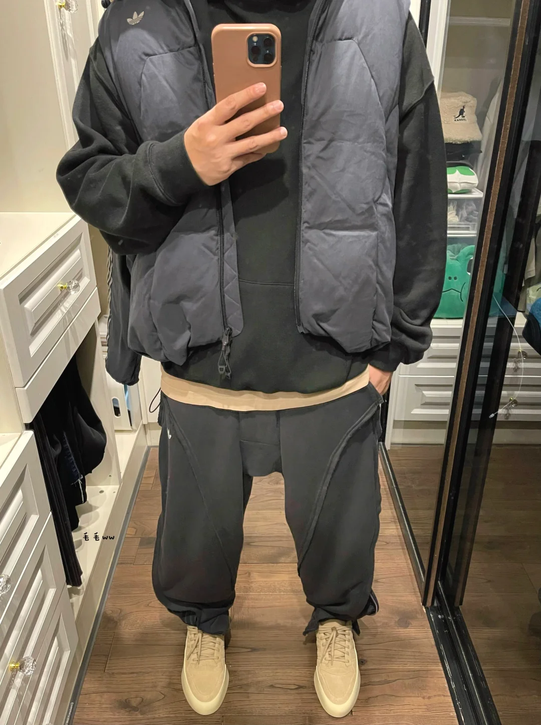 -Hamcus合作系列,第一条长卫裤 -三杠logo在内层,喜欢隐蔽的细节 . -黑白双色,跟上装同色系容易搭配 -束口裤脚,两侧长拉链可改变裤型 . —————— . ✏️本人178cm75kg 球鞋尺码265mm(正常EU42) . 💭以上均为我个人观点,不喜勿喷,欢迎讨论。