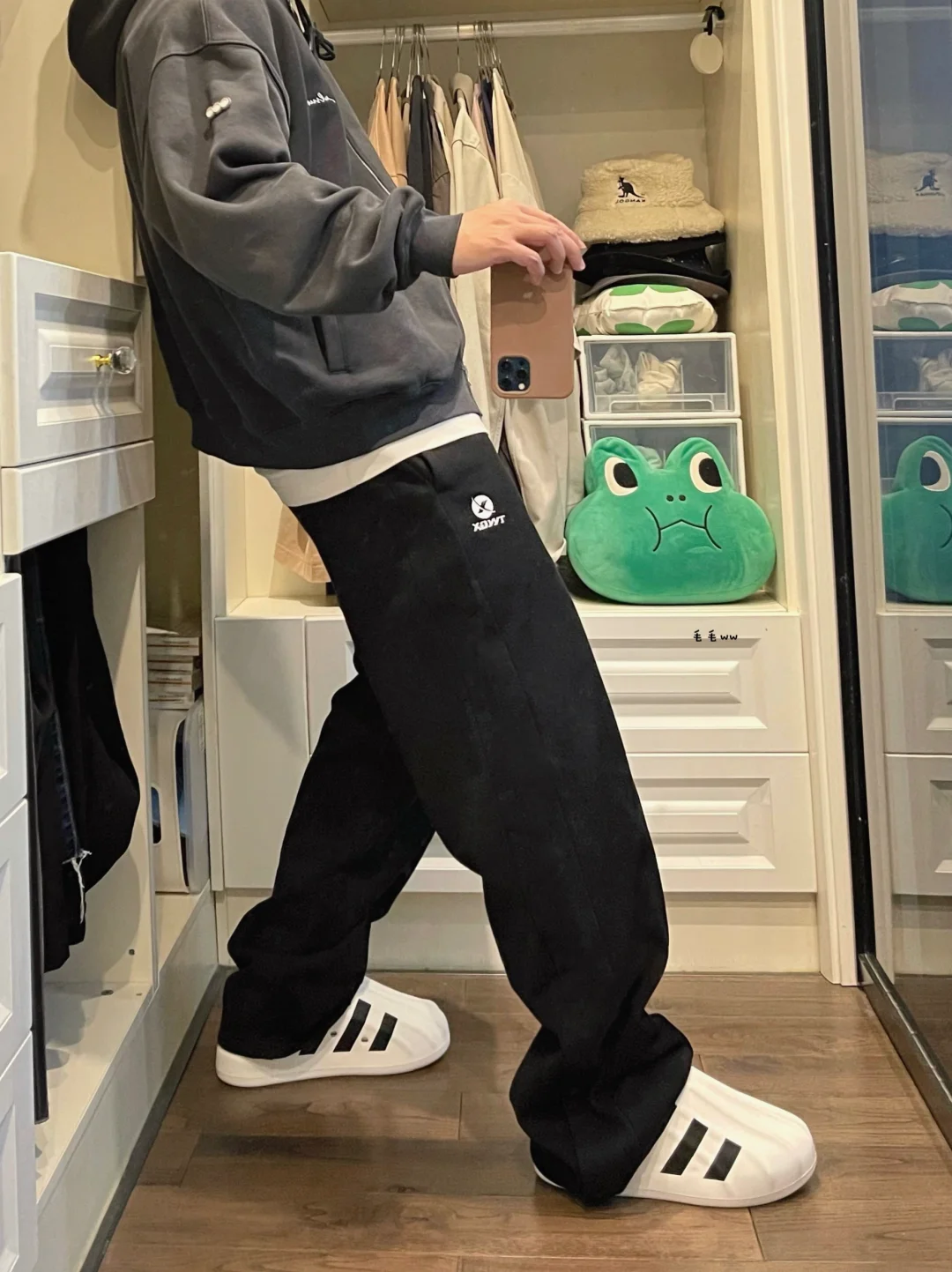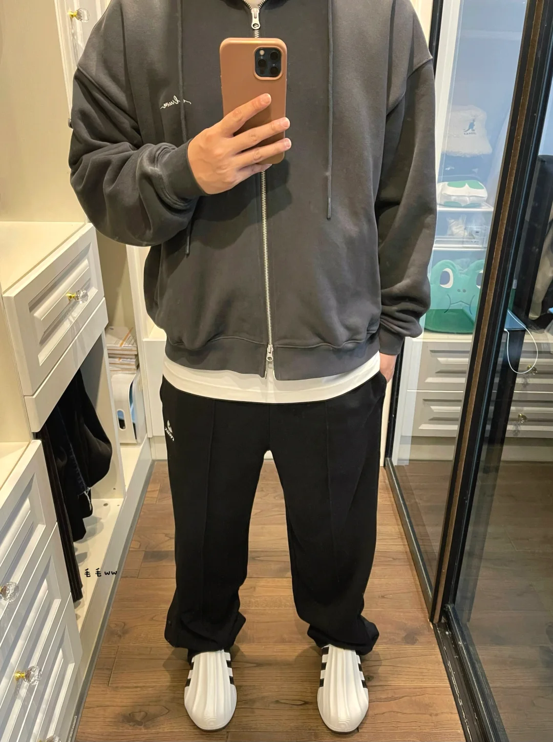 -简约三色,黑白灰搭配,容易上手且不挑单品,有小白鞋的伙伴赶紧试试吧 . -格雷系开衫,相较于套头帽衫更方便;侧排扣长裤,裤脚切换展示不同效果 . —————— . ✏️本人178cm75kg 球鞋尺码265mm(正常EU42) . 💭以上均为我个人观点,不喜勿喷,欢迎讨论。