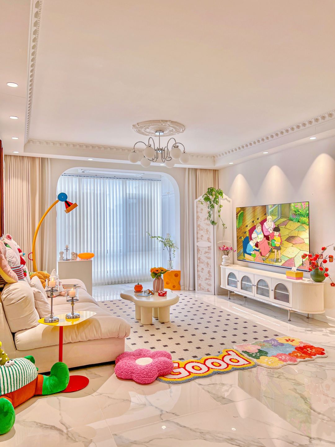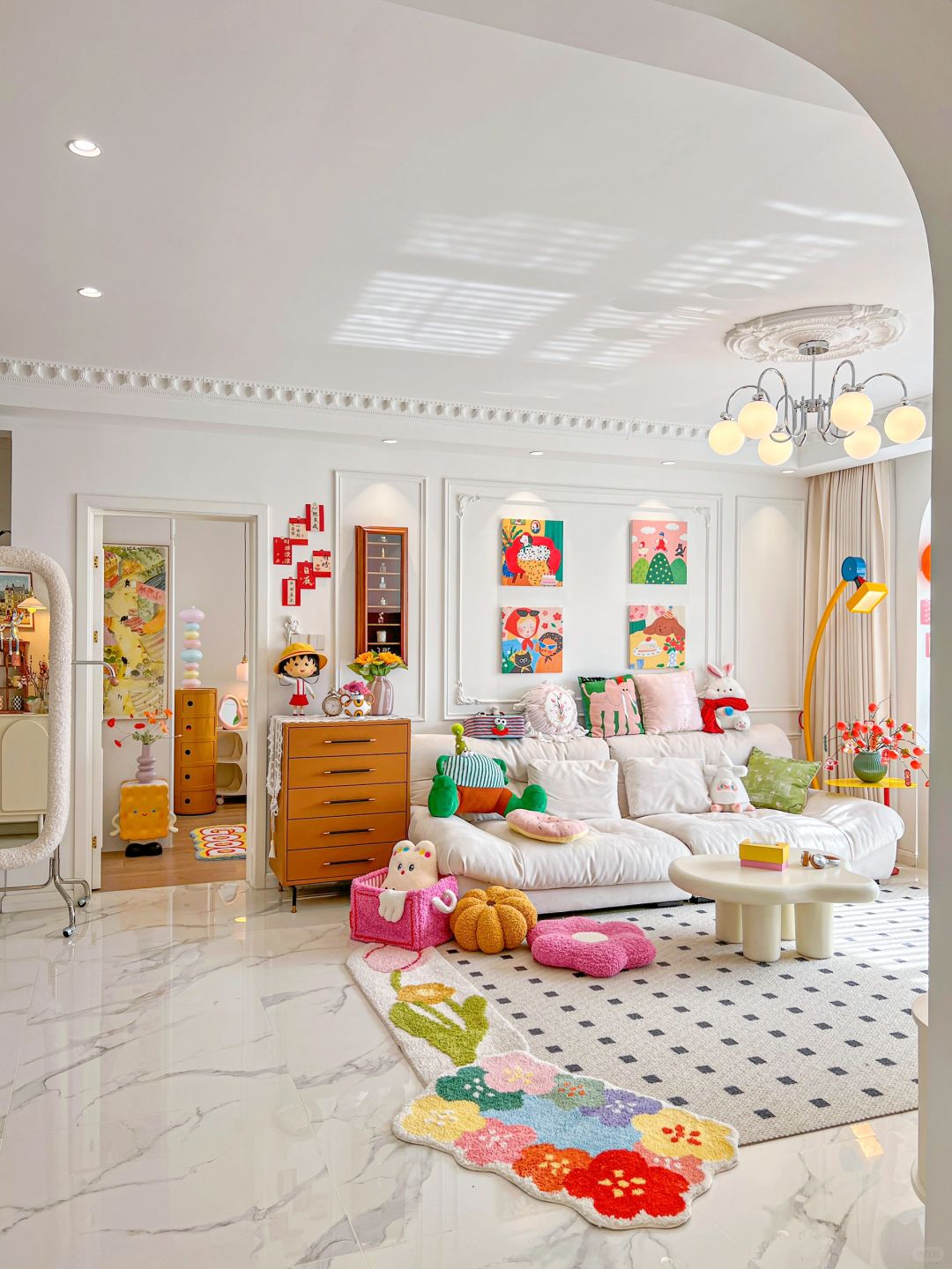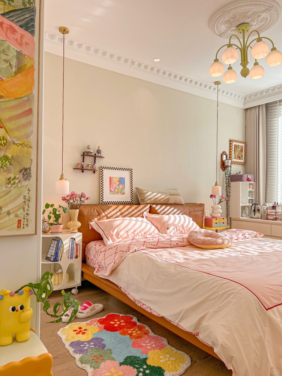 墙面乳胶漆也是纯白色,白色显空间大,还非常百搭