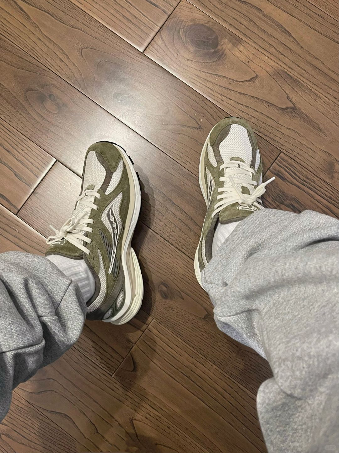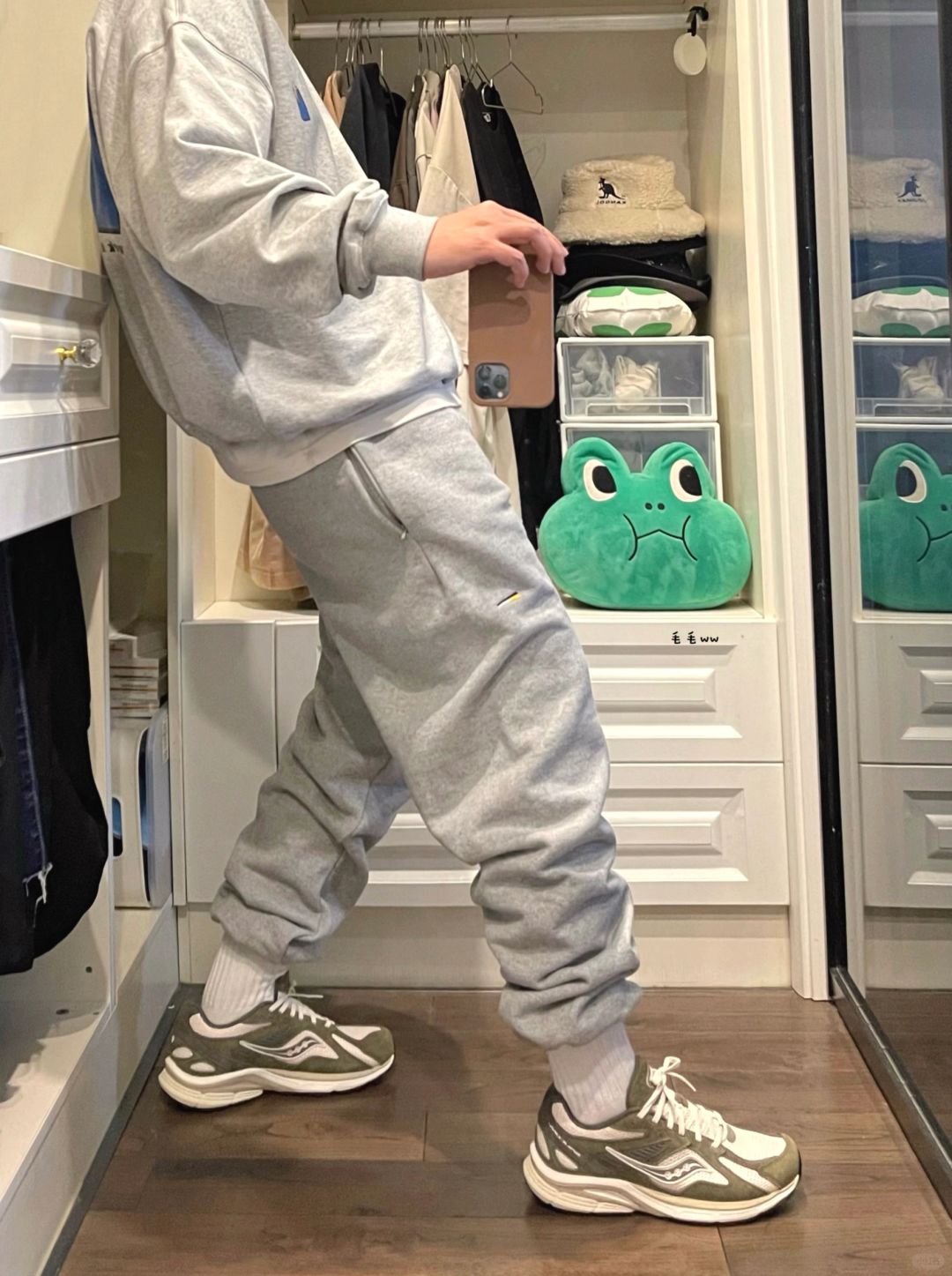 -高级元祖灰,格雷系穿搭;大廓形的卫衣卫裤,营造慵懒感的宽松效果 . -穿过很多复古跑,索康尼是第一次尝试,Kinvara 4脚感软弹,适合通勤 . —————— . ✏️本人178cm75kg 球鞋尺码265mm(正常EU42) . 💭以上均为我个人观点,不喜勿喷,欢迎讨论。