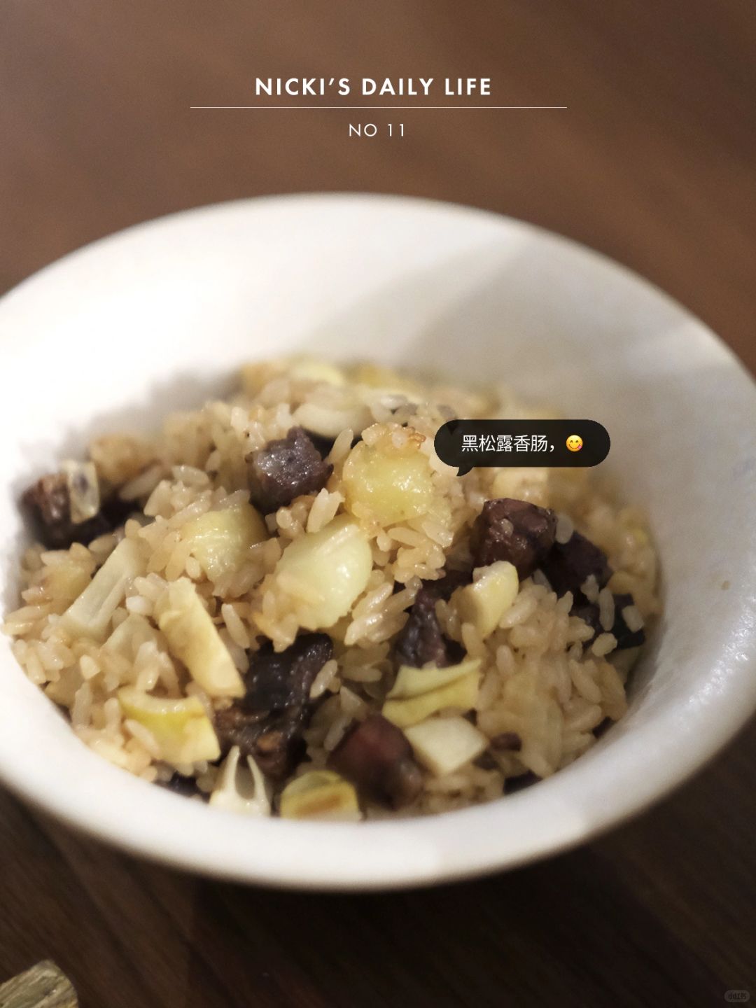 🍲晚餐:黑松露香肠春笋焖饭+菌菇鸡汤