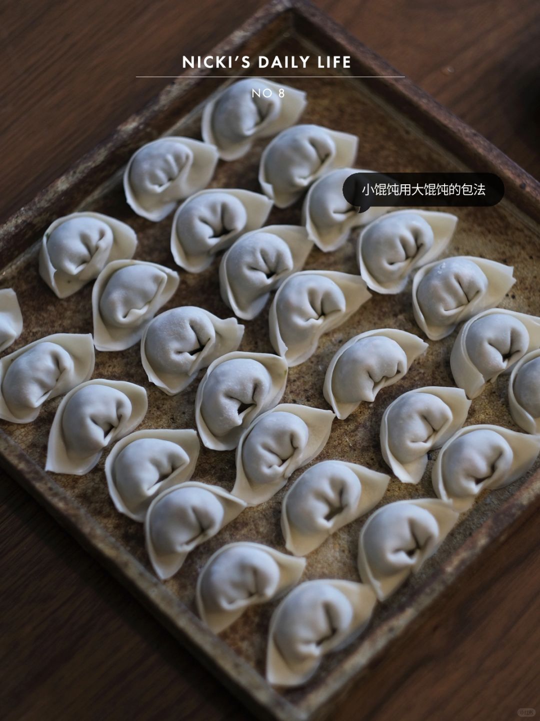 上周包汤圆的荠菜肉馅还剩一些,用来包小馄饨刚好,小馄饨的包法和大馄饨一样,这样才吃的过瘾…