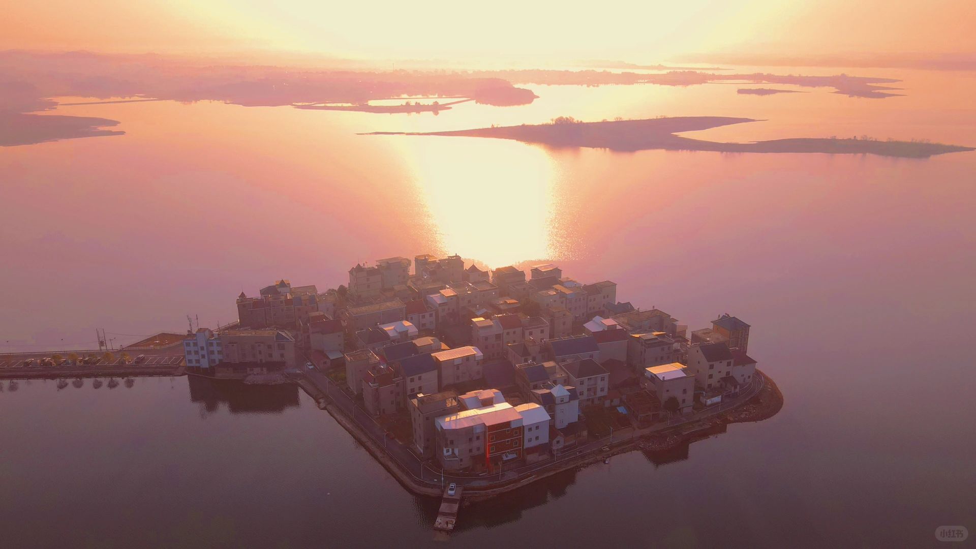 一个四周环湖小渔村