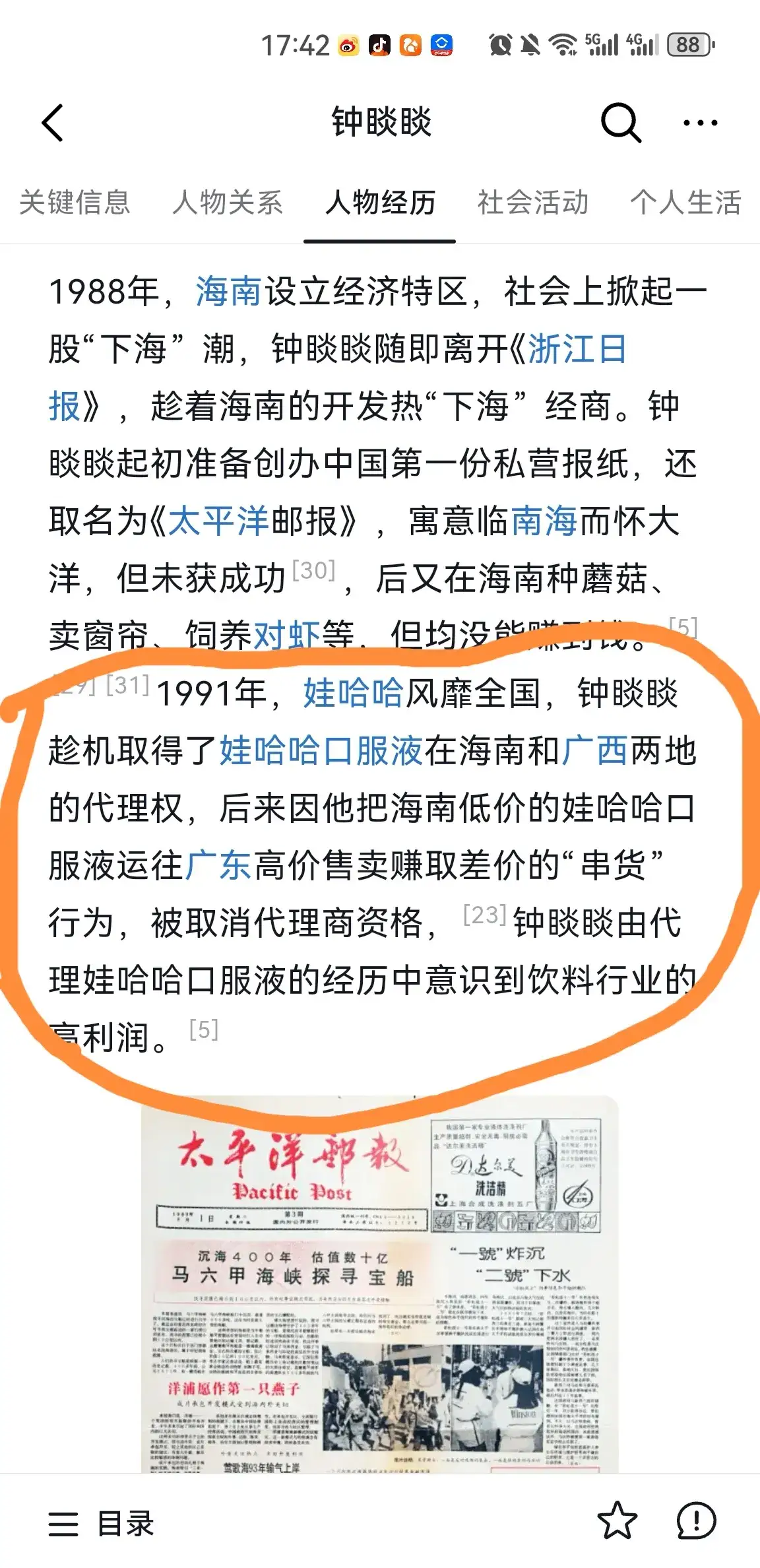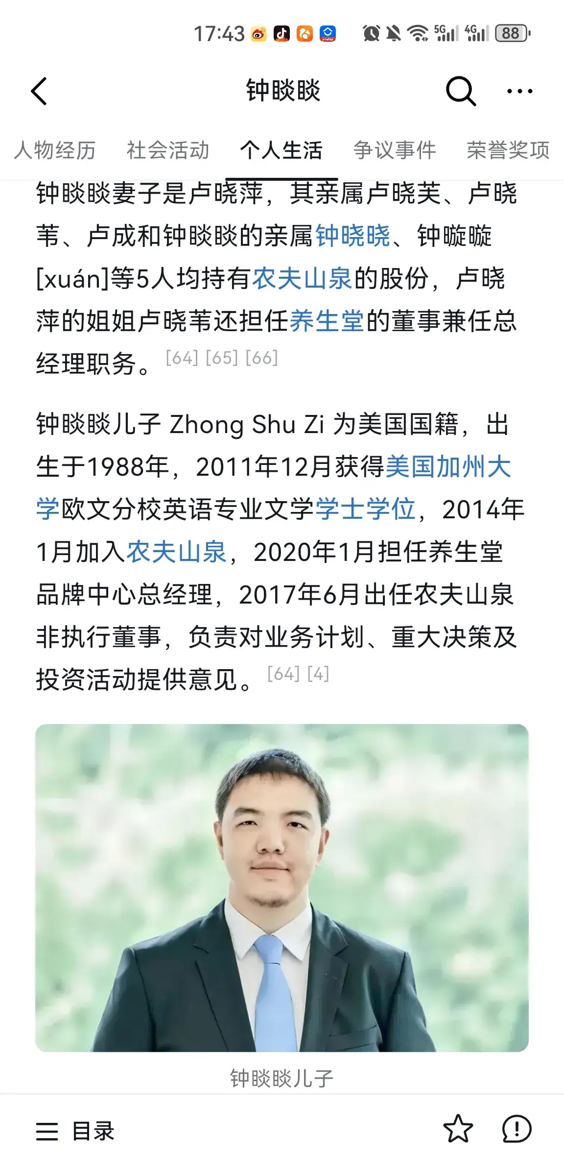 截图信息来源抖音百科。#钟睒睒回应网友#