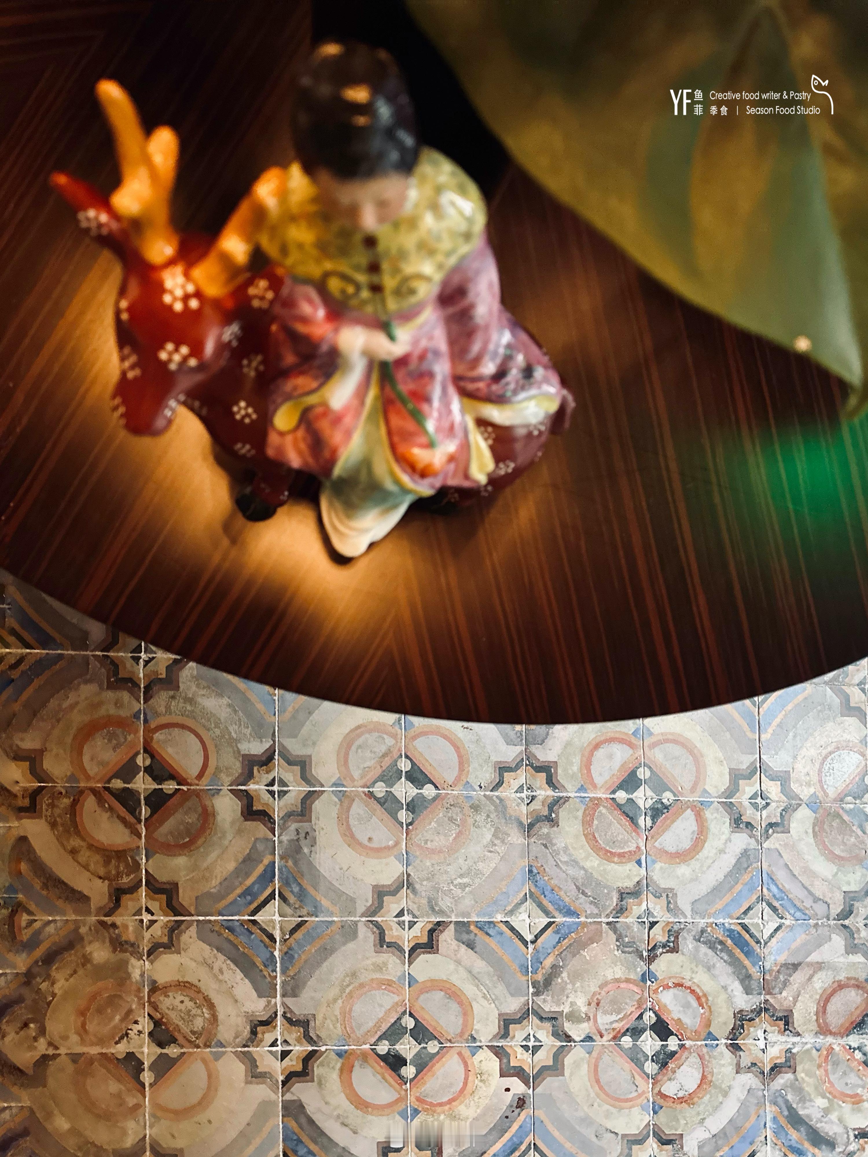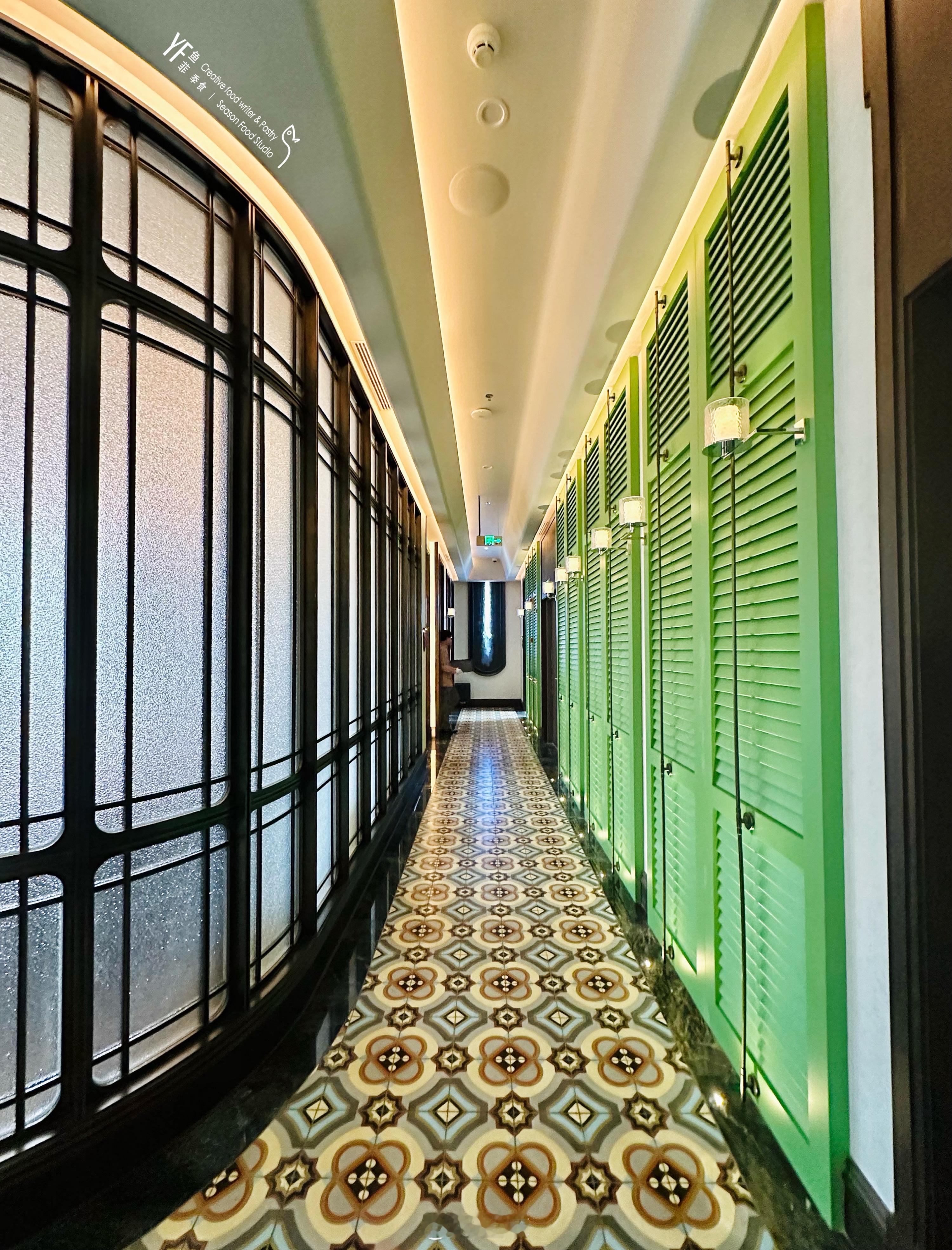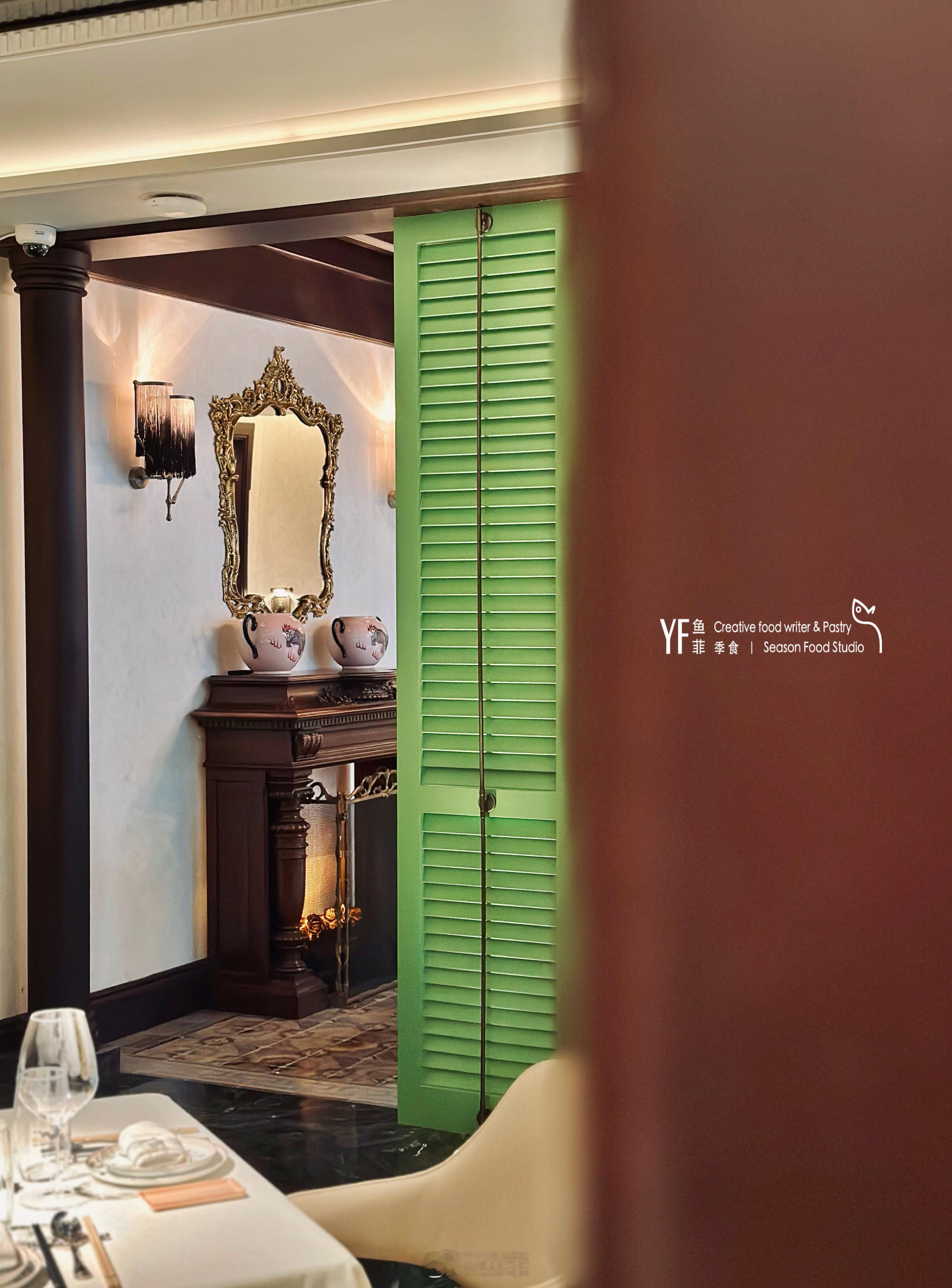 朋友邀约新餐厅吃饭,这座修旧如故的独栋小楼,入门跨过翠竹小院,前厅从顶上木板到脚下三色陈砖,皆是旧物不言的原址老物。二楼明亮摩登的松花青玉色百叶门,亦将步行廊道的年代感纵贯古今,用老楼新筑之姿呈现。