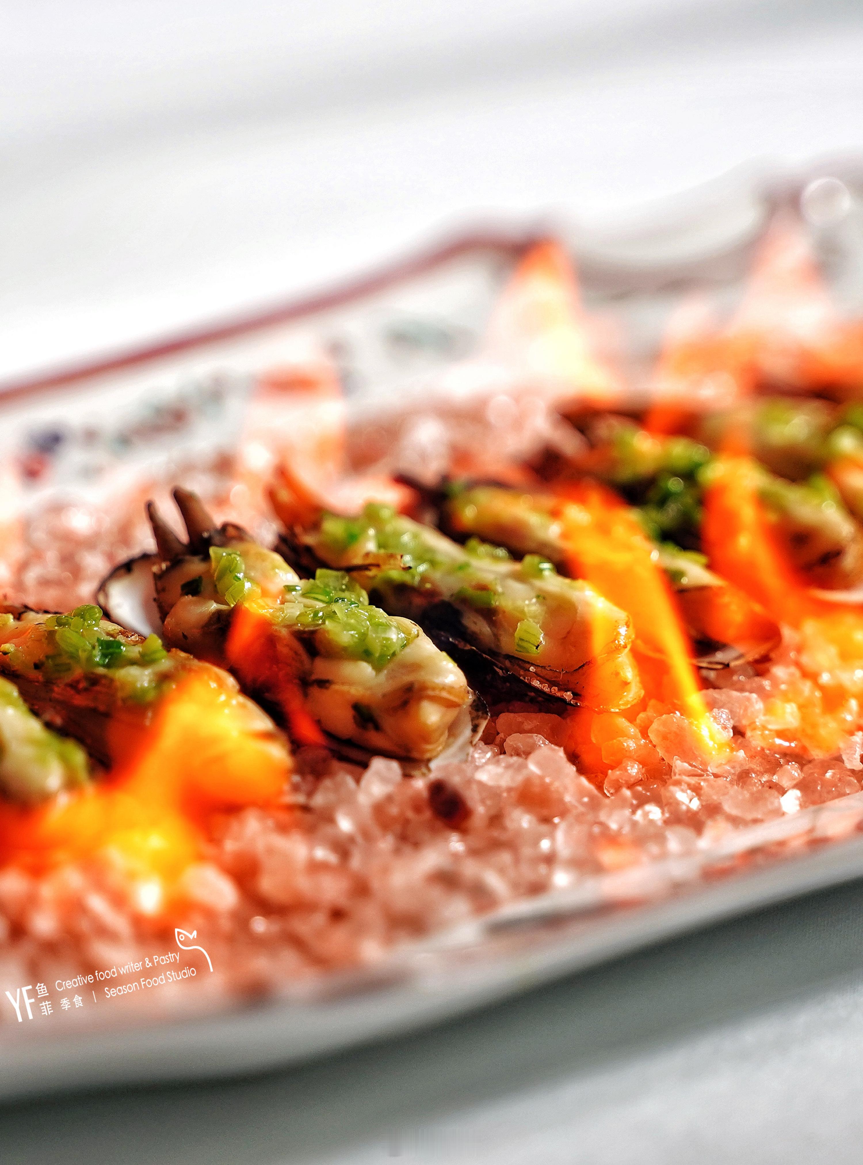 🙇♂️像还有春韭菜汆望潮、鹅肝梅干菜汁牛小排、脆葱脱脂黑毛猪手、海胆荠菜黄鱼盏都是这个季节的甬式风物和创意新菜。另外用香茅十三香咖喱佐味的象山小海鲜、以及用绍兴苋菜臭豆腐浅润的温州鮸鱼饼,皆是用不同香辛料与发酵食材,让海味焕发了第二春。