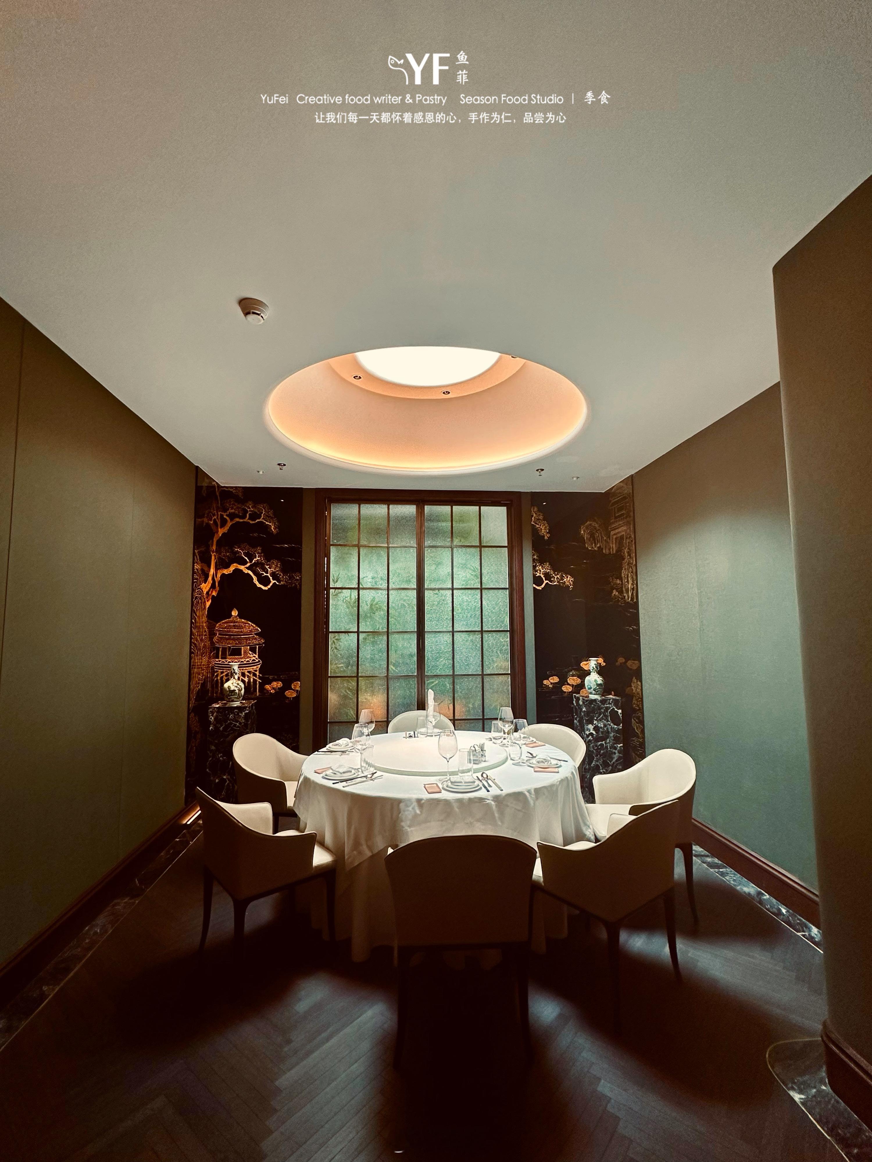 餐厅一楼大厅有散座,两层共8间包房,每间皆以宁波的湖命名。尤其那间“牟山”别有洞天,特别打造的“透明天幕”玻璃顶,让食客在用餐的时段,亦能边啖美馔边将四季的光影雨雪,目存于天圆之境中。