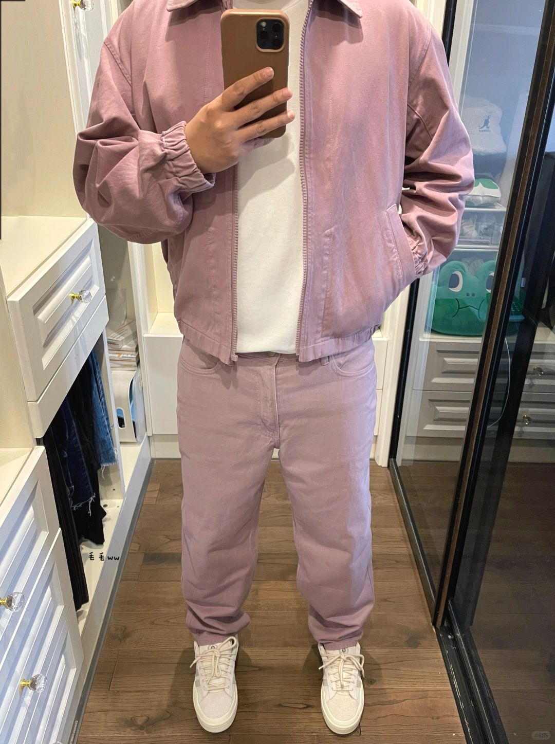 -粉色系碰上U系列,每次都能碰撞出火花;去年老干部夹克还历历在目,今年又有工装外套跟牛仔长裤 . -低饱和度粉紫色,春季固然是吸睛的;但吐槽下尺码,宽松尺码给整成修身效果,衣长裤长也越来越短 . —————— . ✏️本人178cm75kg 球鞋尺码265mm(正常EU42) . 💭以上均为我个人观点,不喜勿喷,欢迎讨论。