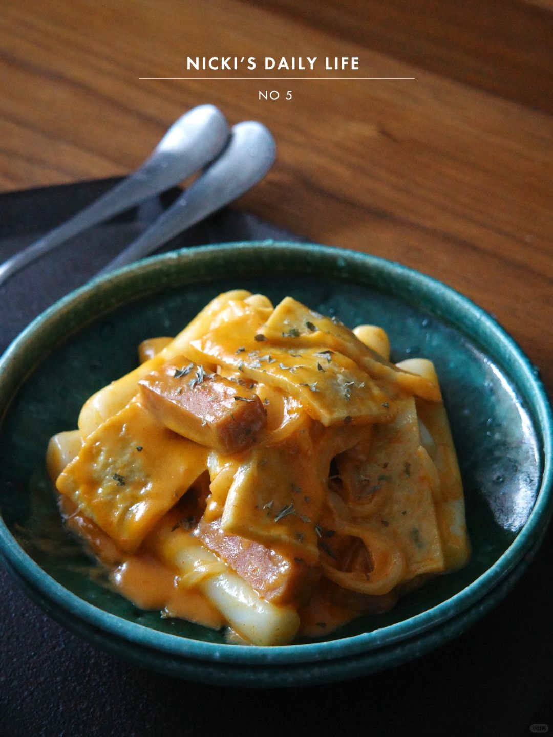 每次去韩国街都会🛒一些年糕、泡菜,喜欢他们的长条年糕,加点鱼饼、香肠,罗杰炒年糕很方便就做好了…