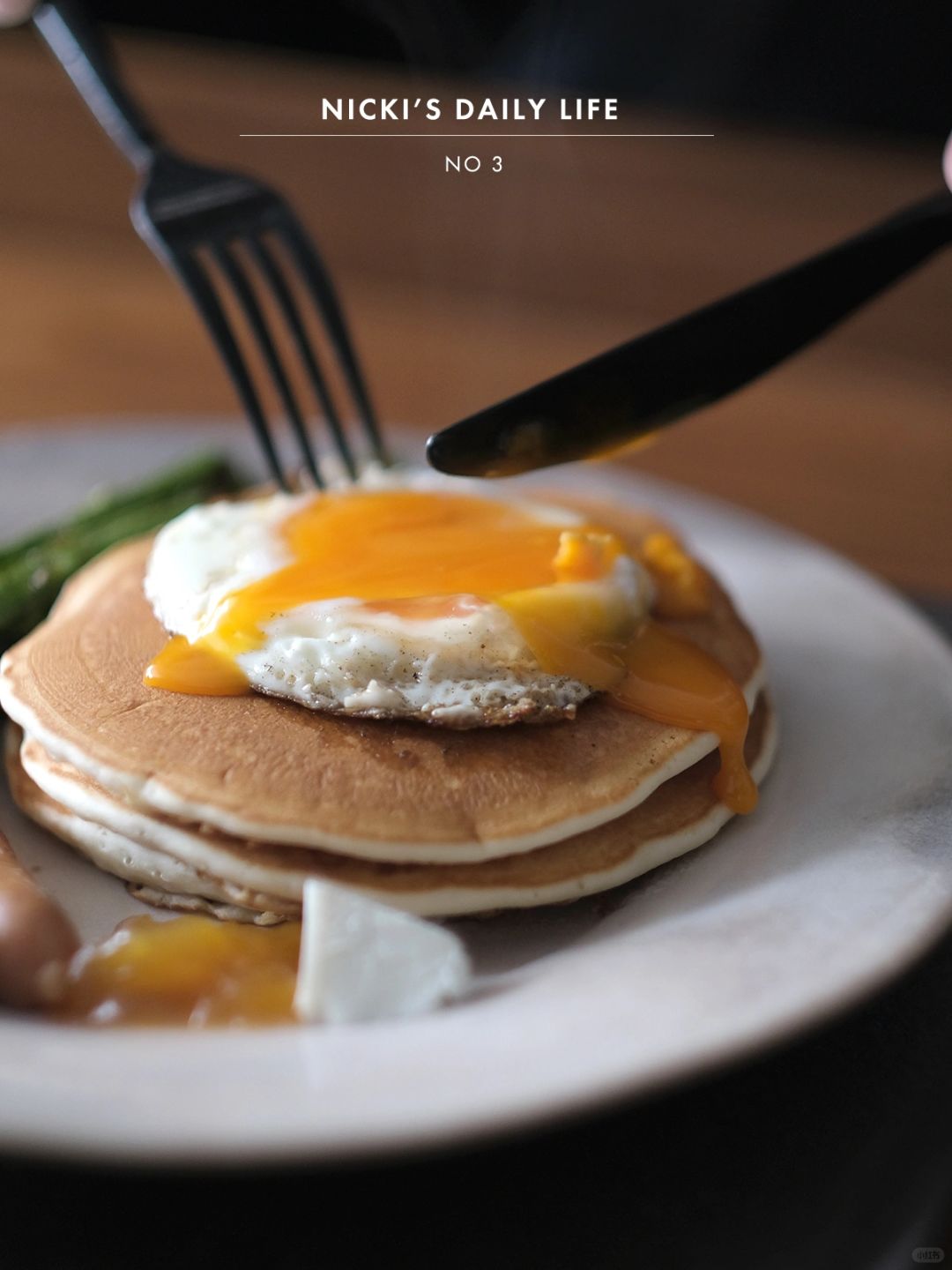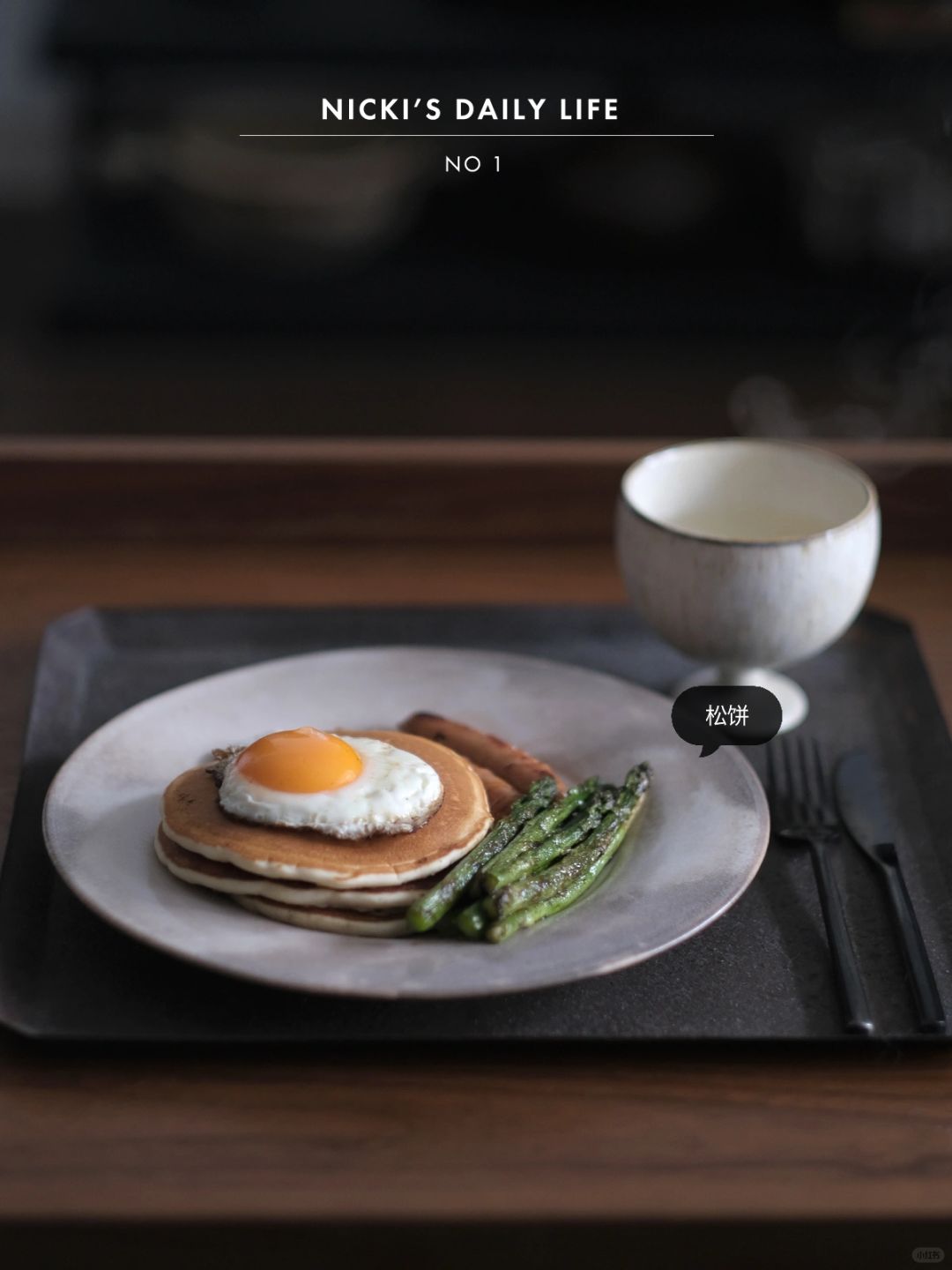 喜欢看着松饼煎到冒泡的状态,一张叠着一张,冒着热气…