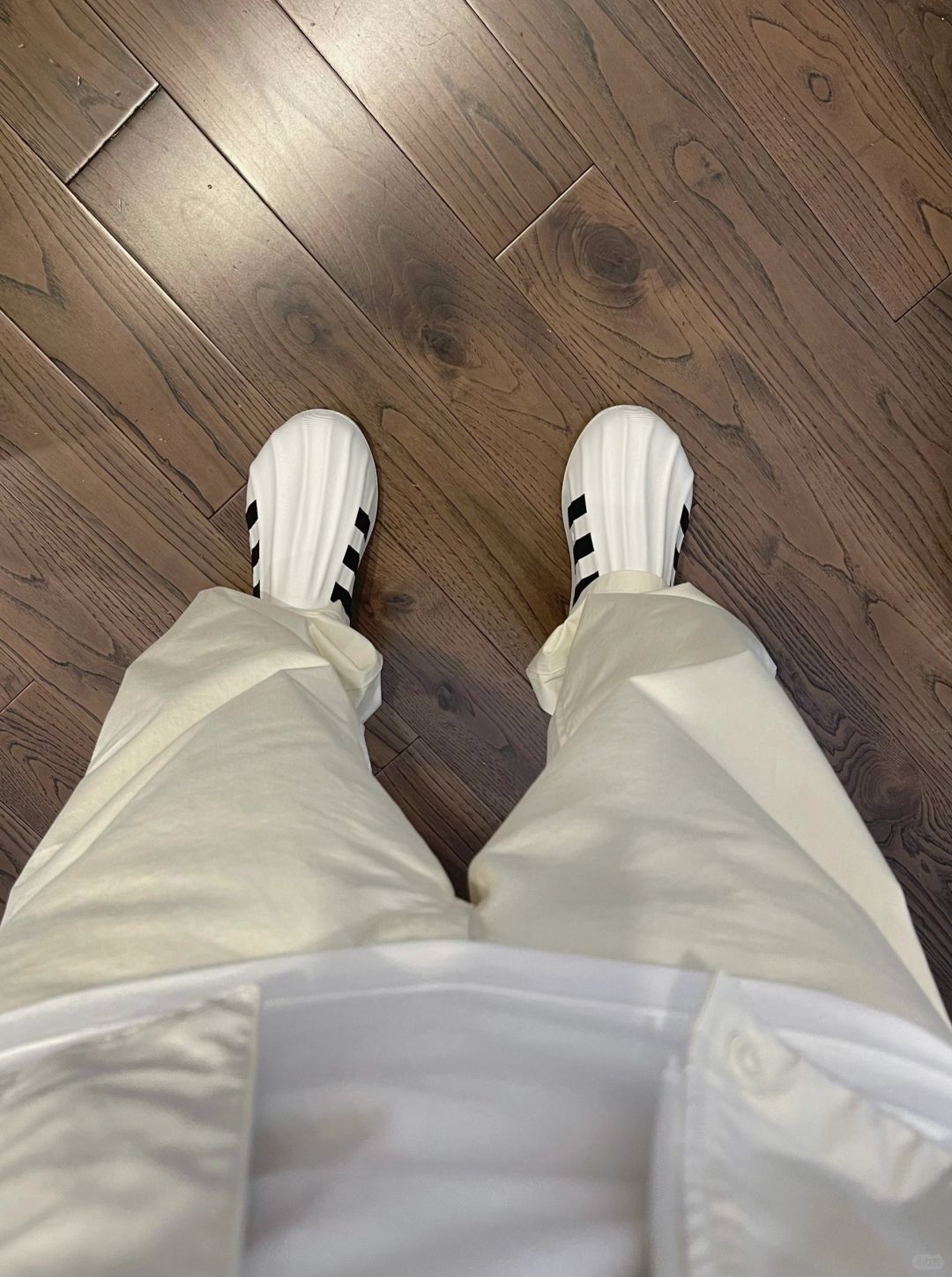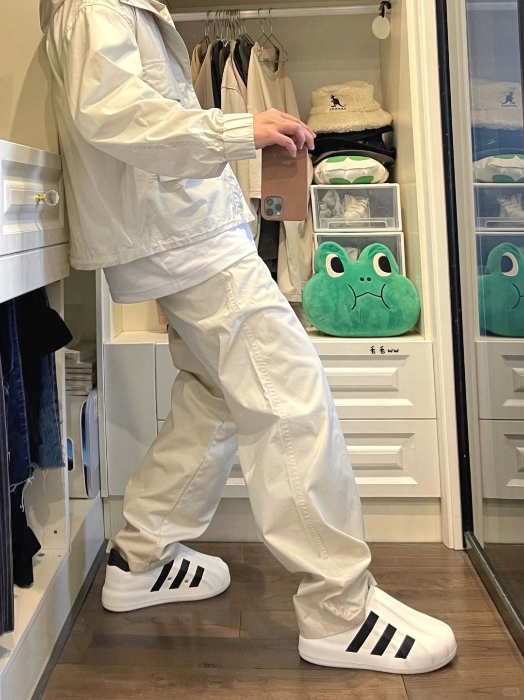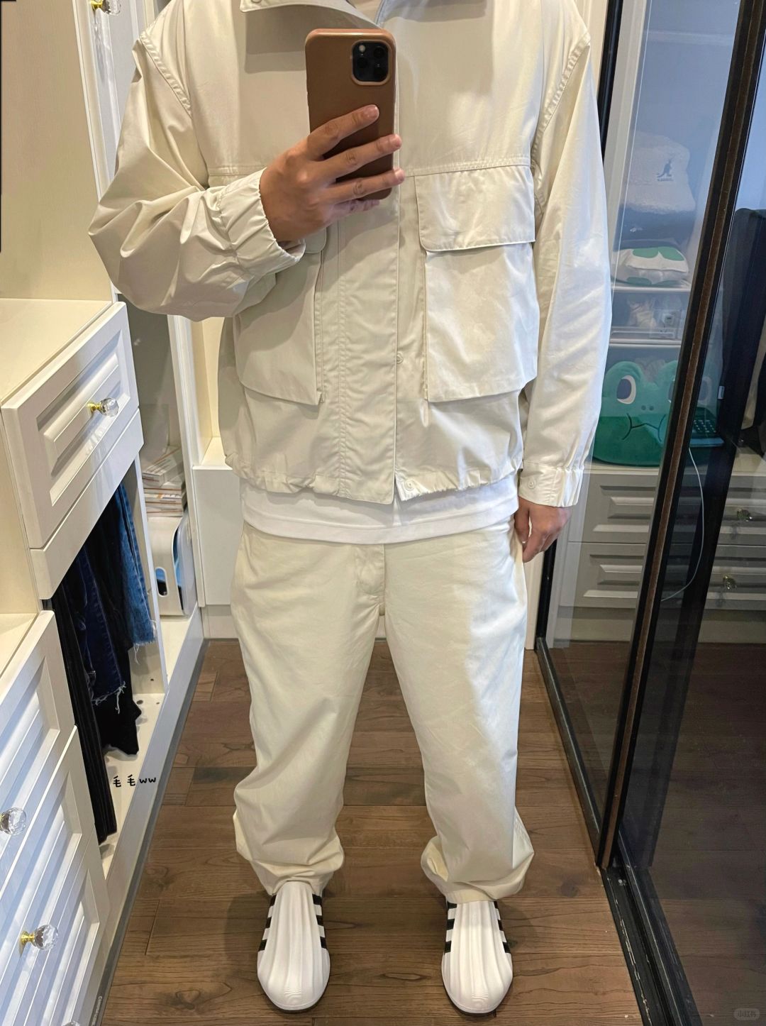 -清爽白色系穿搭,春夏款最大感受就是薄,每一件相比之前类似的款都更轻薄 . -连帽夹克对比工装夹克,尺码正常;无褶长裤的版型跟秋冬款类似,推荐白色 . —————— . ✏️本人178cm75kg 球鞋尺码265mm(正常EU42) . 💭以上均为我个人观点,不喜勿喷,欢迎讨论。